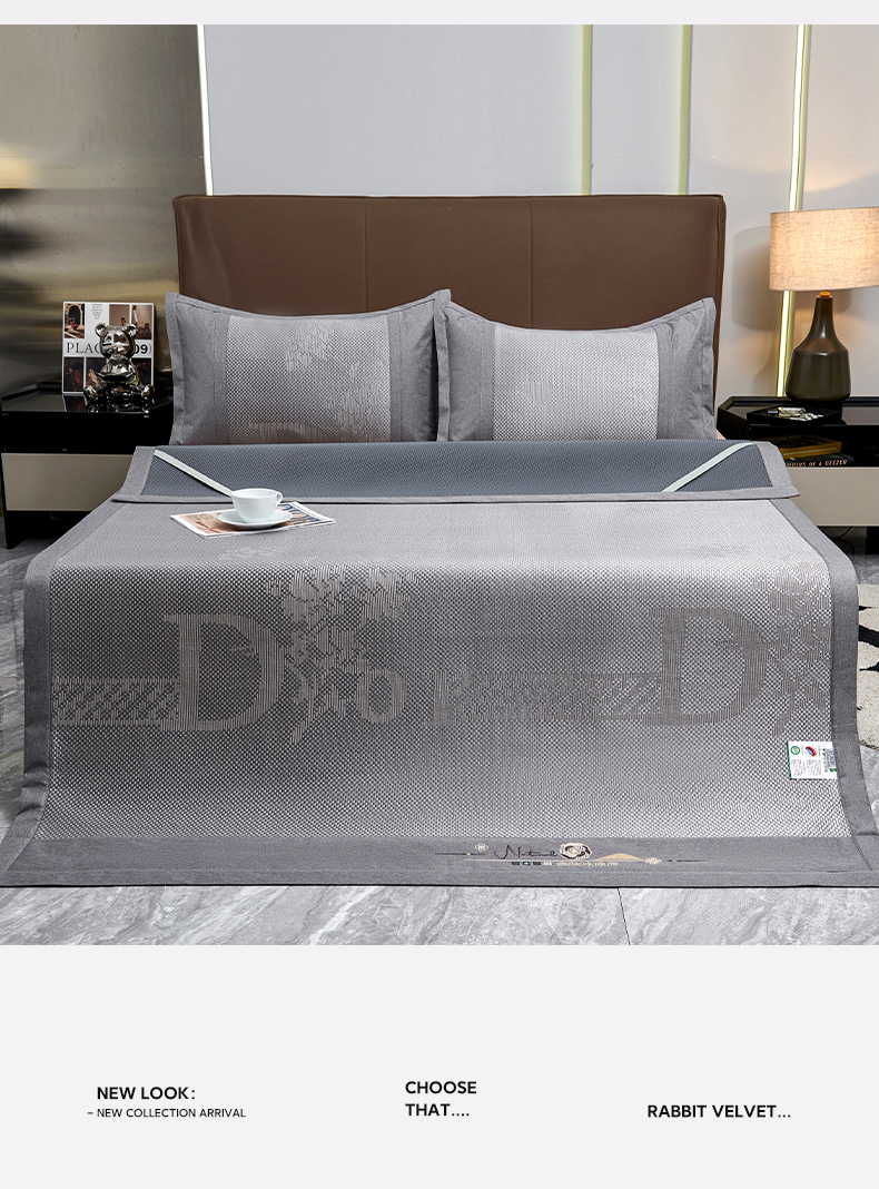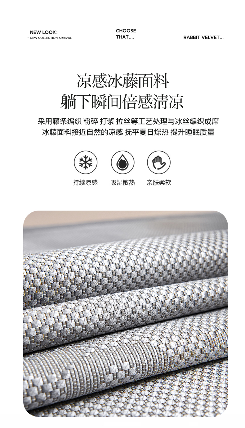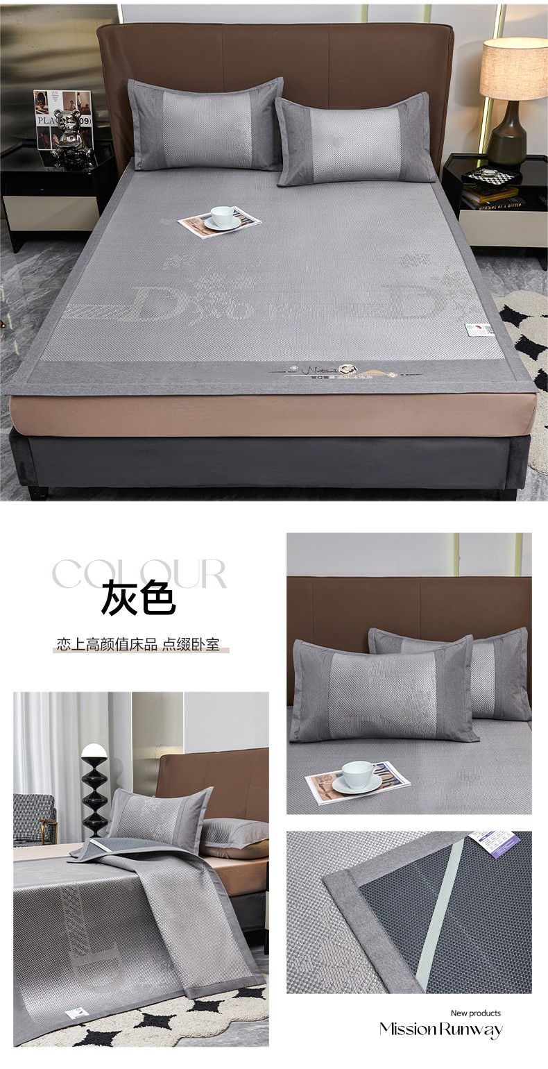 商品名称:优姿家纺 2024新款藤王重工刺绣加厚编制冰滕双凉席三件套 灰色