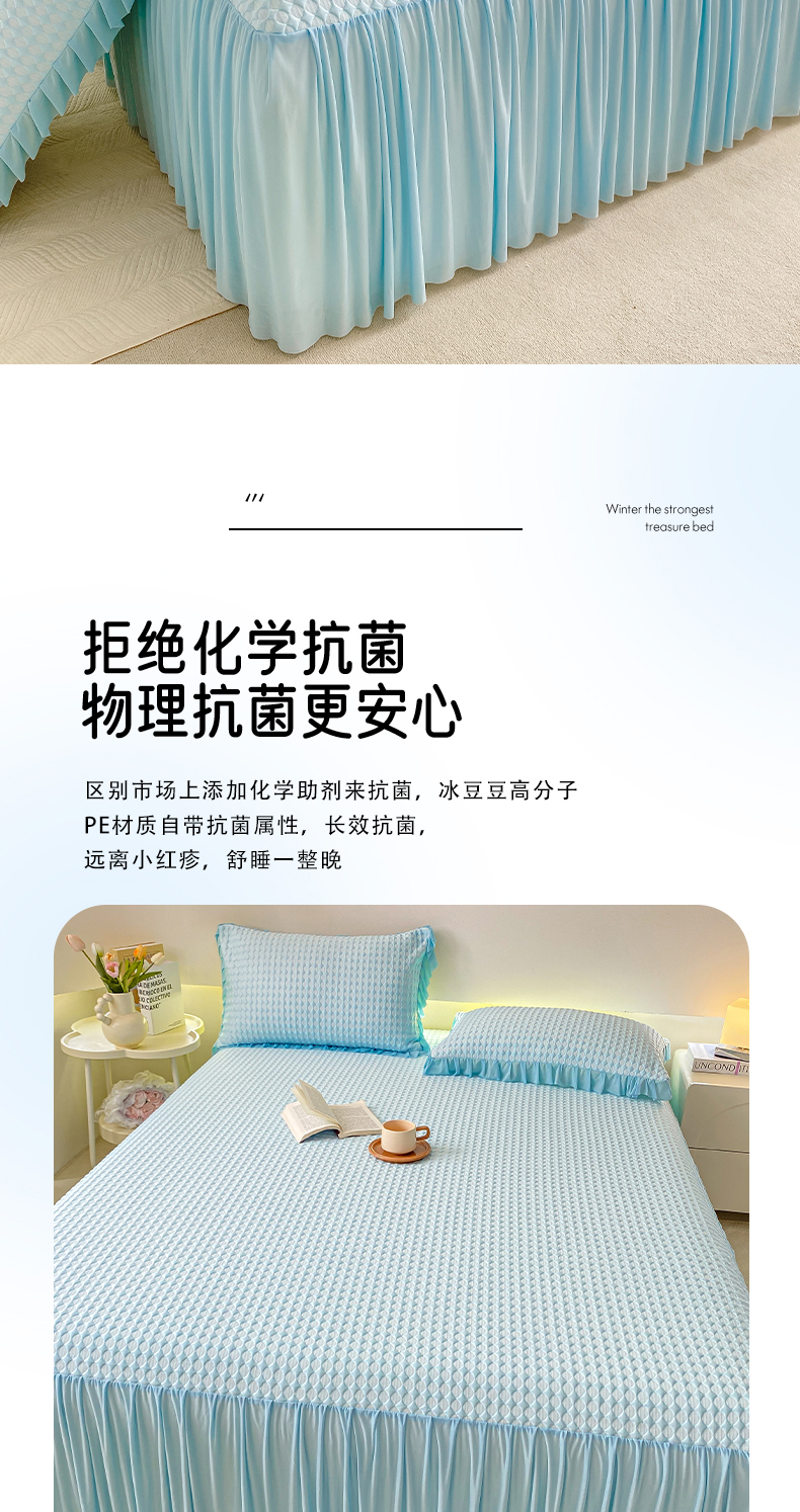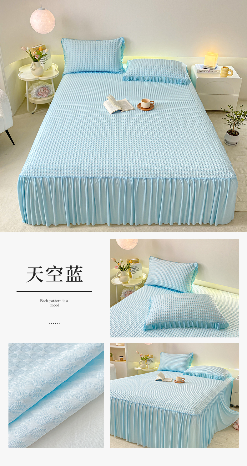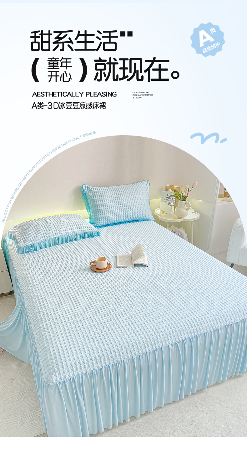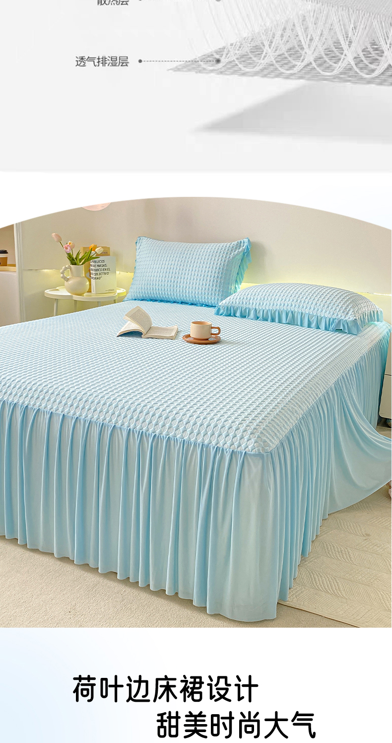 卡派 2024新款凉豆豆冰丝软床裙 天空蓝
