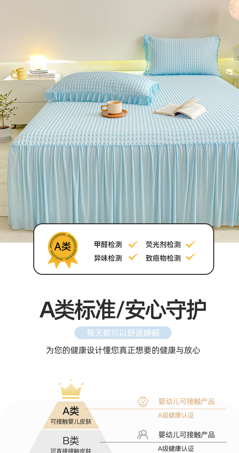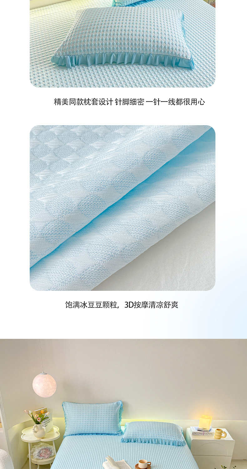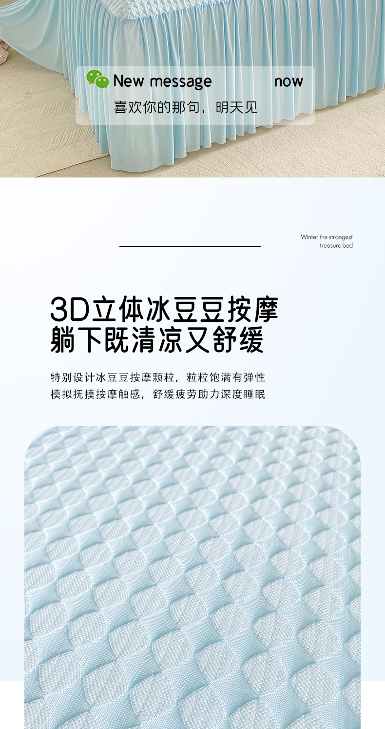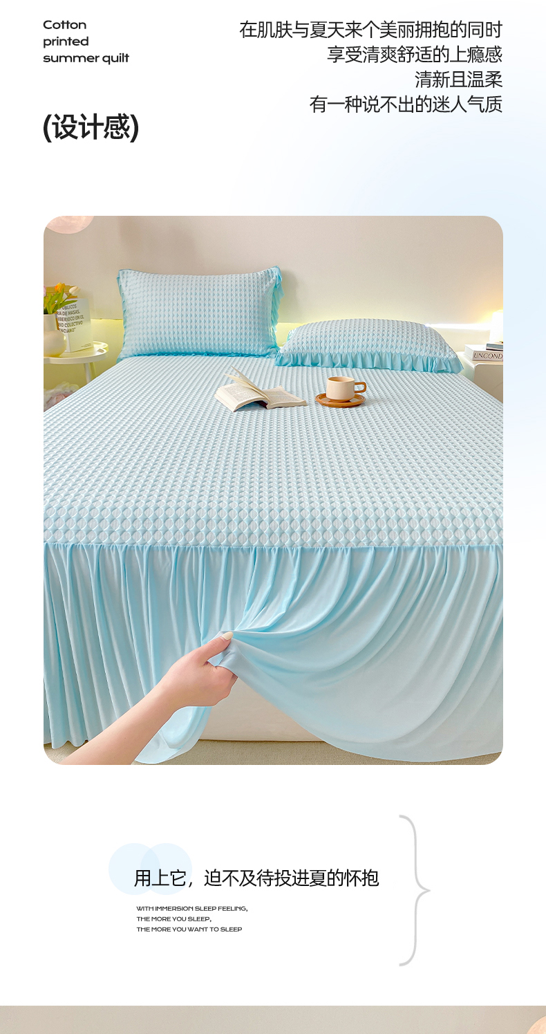 卡派 2024新款凉豆豆冰丝软床裙 天空蓝