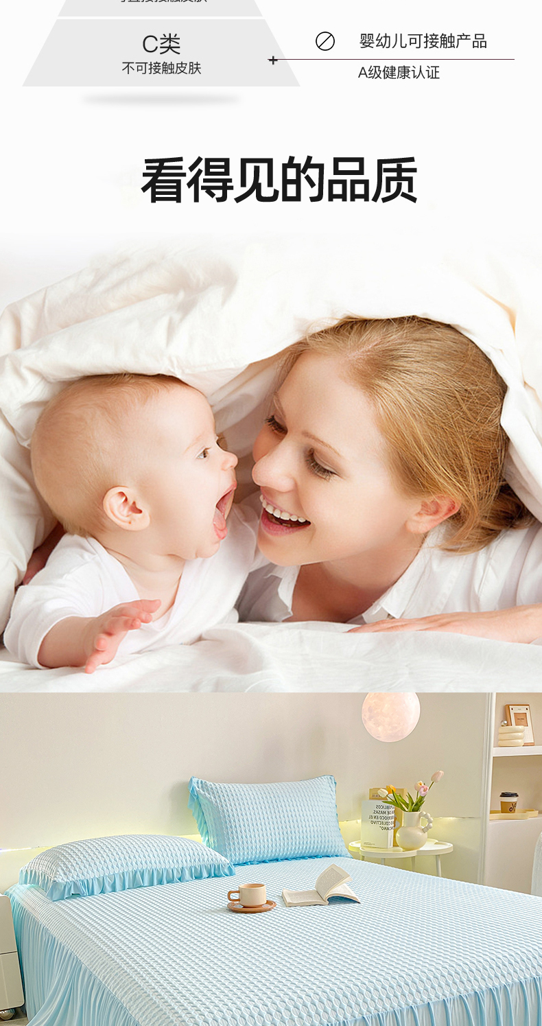 (总)卡派 2025新款小冰熊豆豆席-单人床款,少女粉,绅士灰,水绿,天空蓝,薰衣紫
