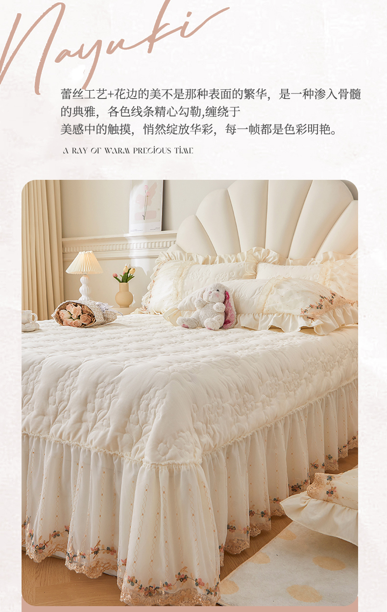 • 91家纺网 家纺一手货源 找家纺 恒爱家纺2024新款唯美舒适小竺棉芊洛公主系列单床盖 天使白