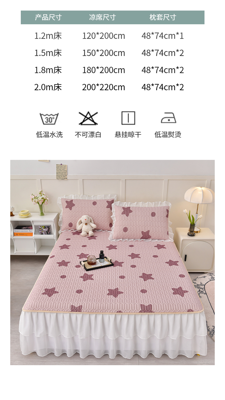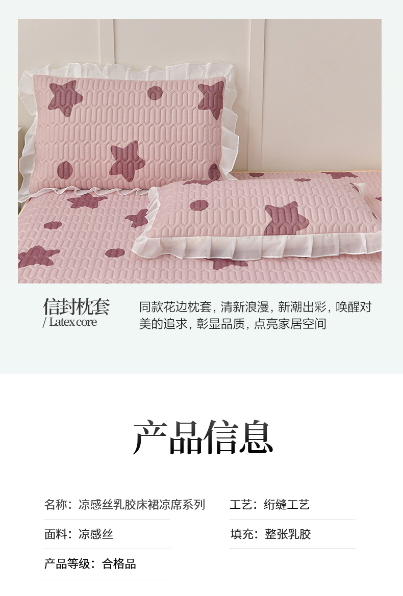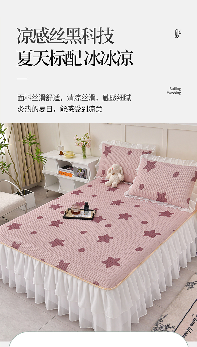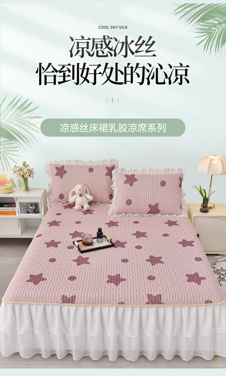 商品名称:民新家纺 2024新款凉感丝乳胶床裙凉席 小星星-豆沙