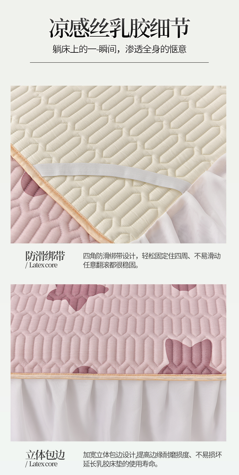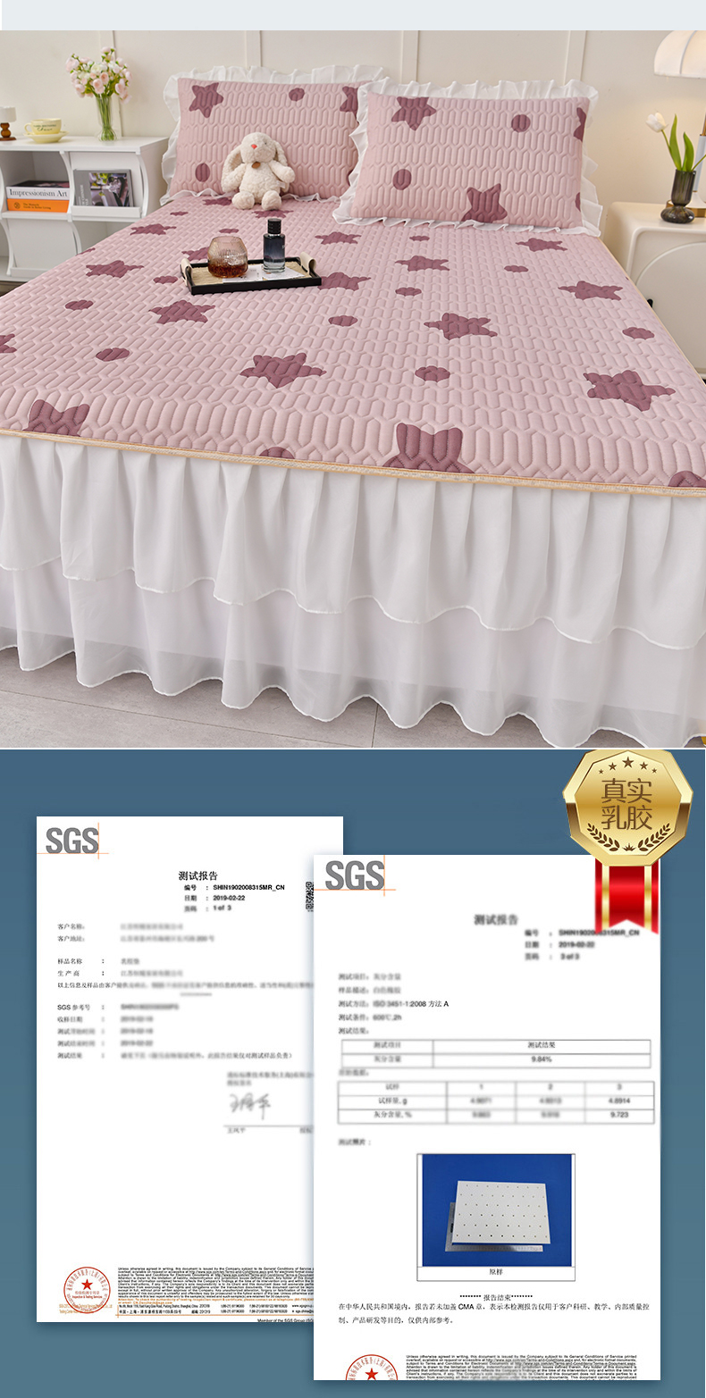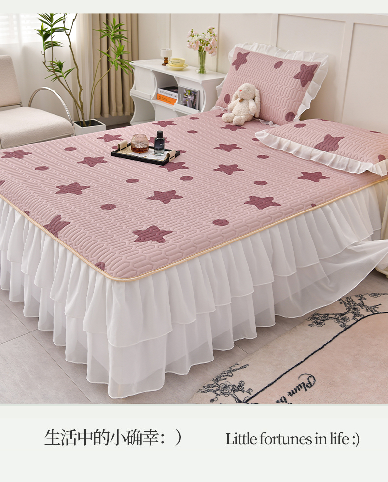 商品名称:民新家纺 2024新款凉感丝乳胶床裙凉席 小星星-豆沙