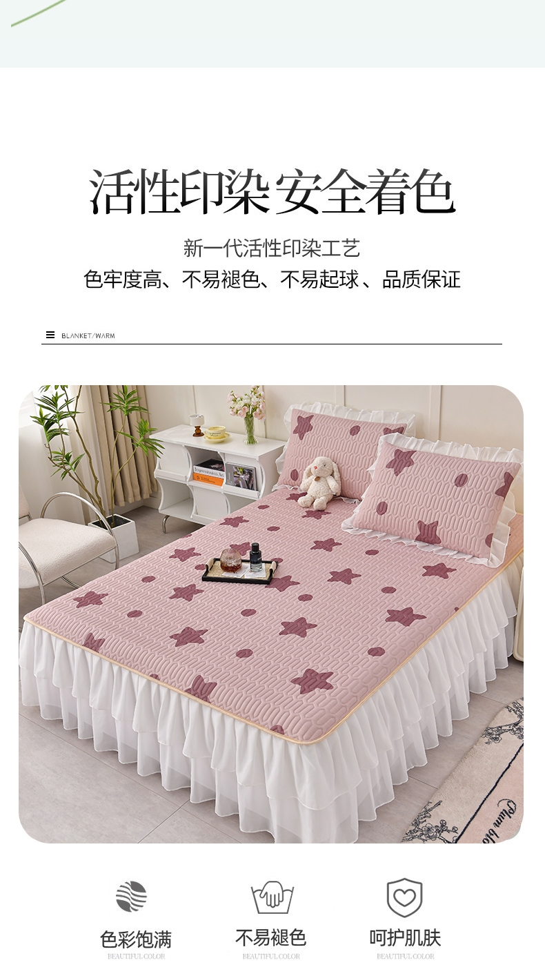 (总)民新家纺 2025新款牛奶绒夹棉床裙三件套,浪漫时光-浅紫,浪漫时光-灰,浪漫时光-大红,浪漫时光-浅粉,浪漫时光-浅蓝,浪漫时光-浅绿,浪漫时光-浅米黄