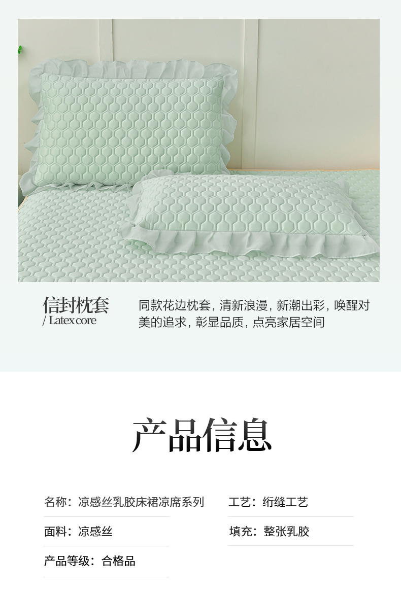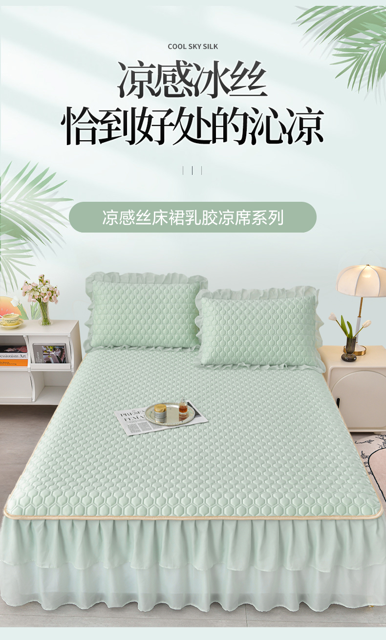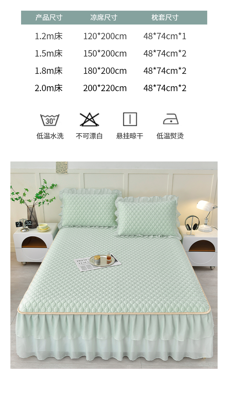 商品名称:民新家纺 2024新款凉感丝乳胶床裙凉席 足球花-清新绿