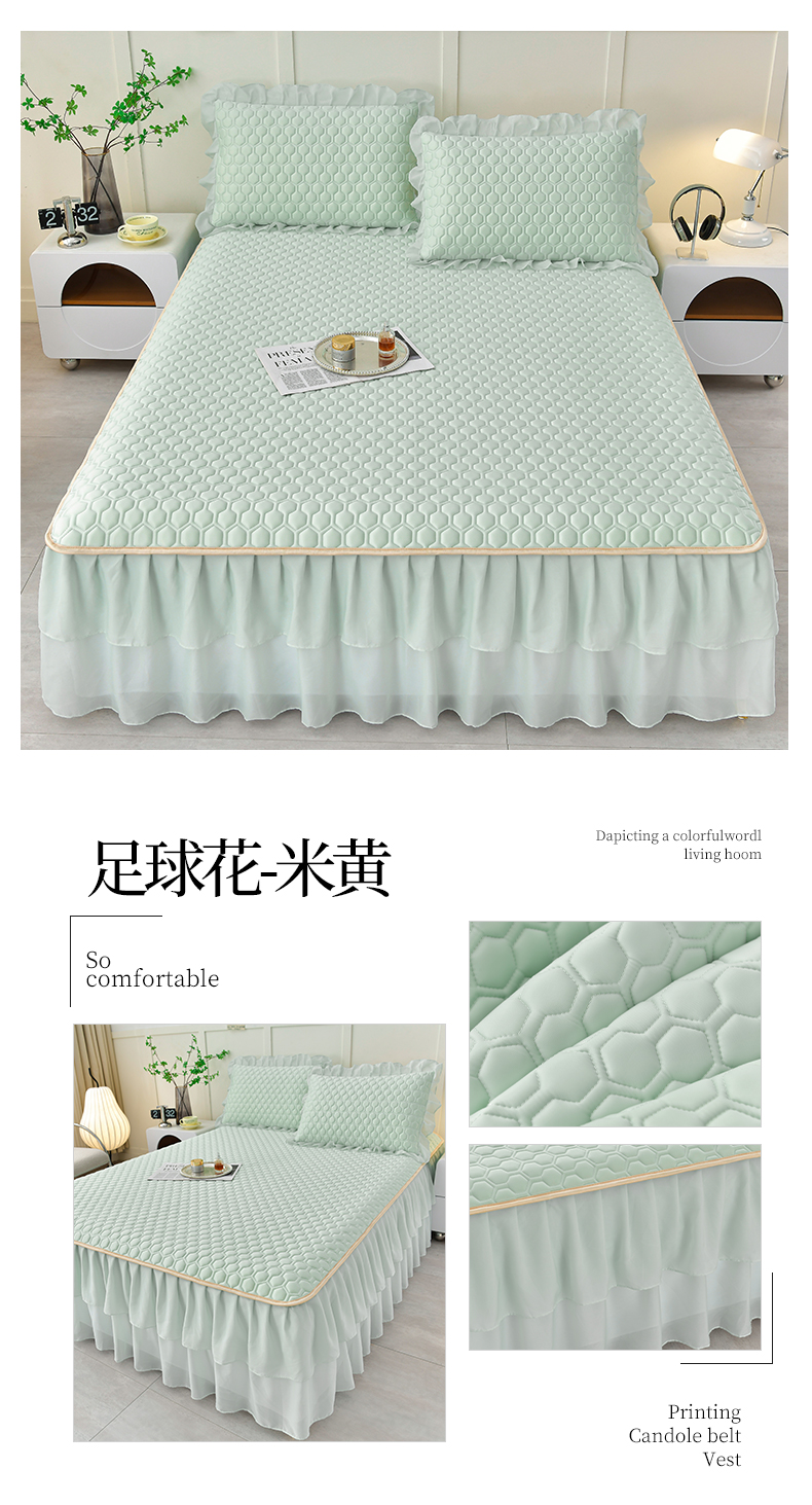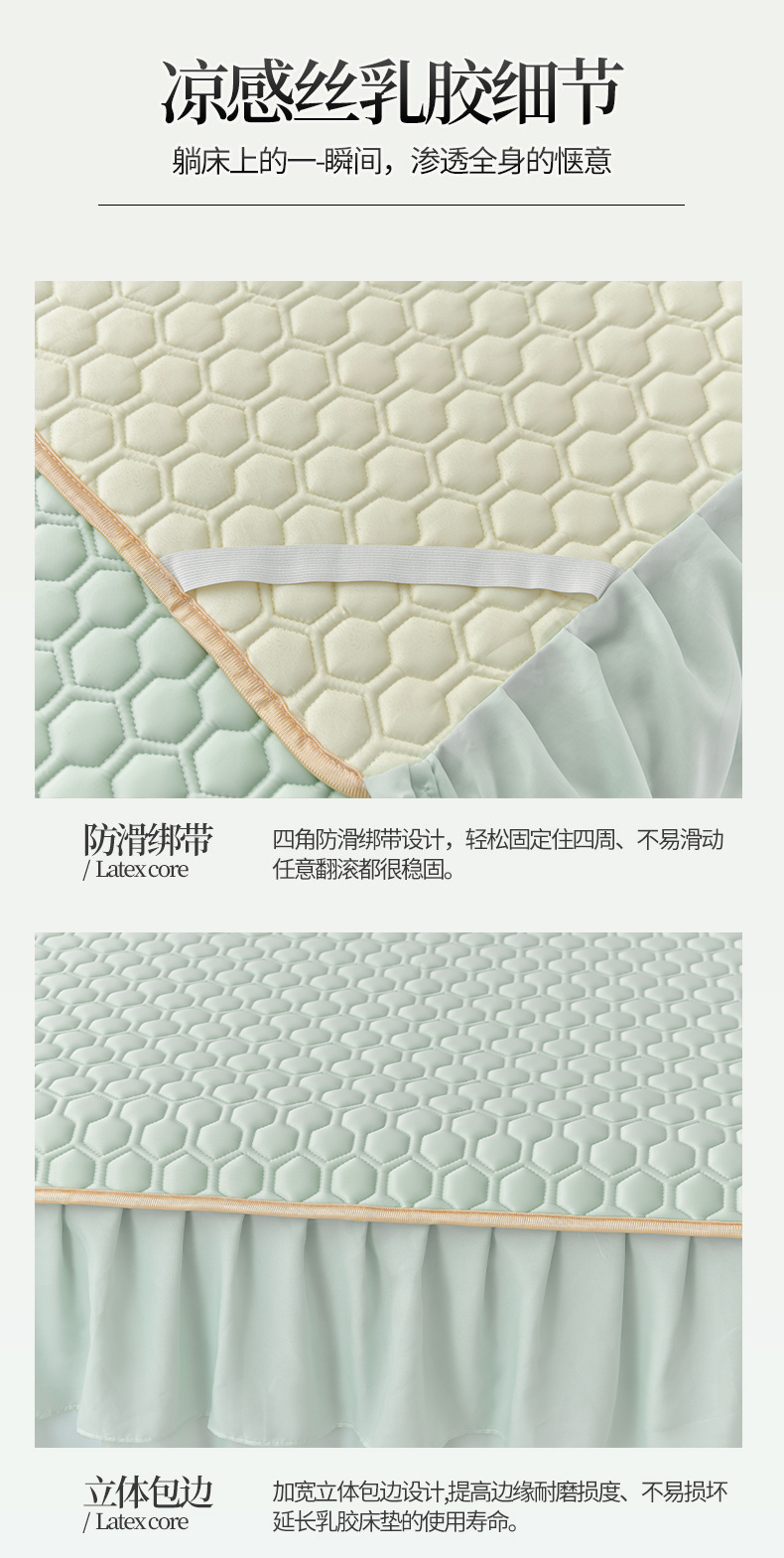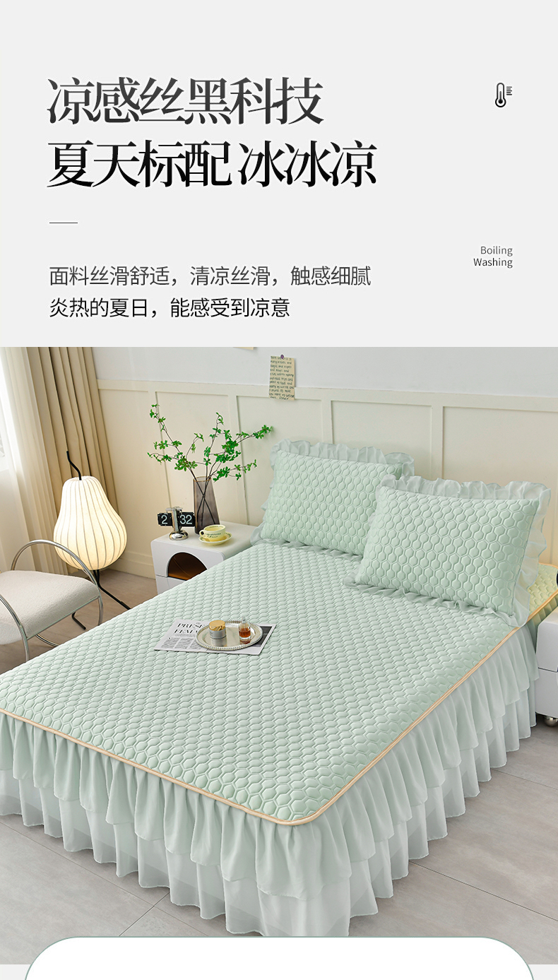 商品名称:民新家纺 2024新款凉感丝乳胶床裙凉席 足球花-清新绿