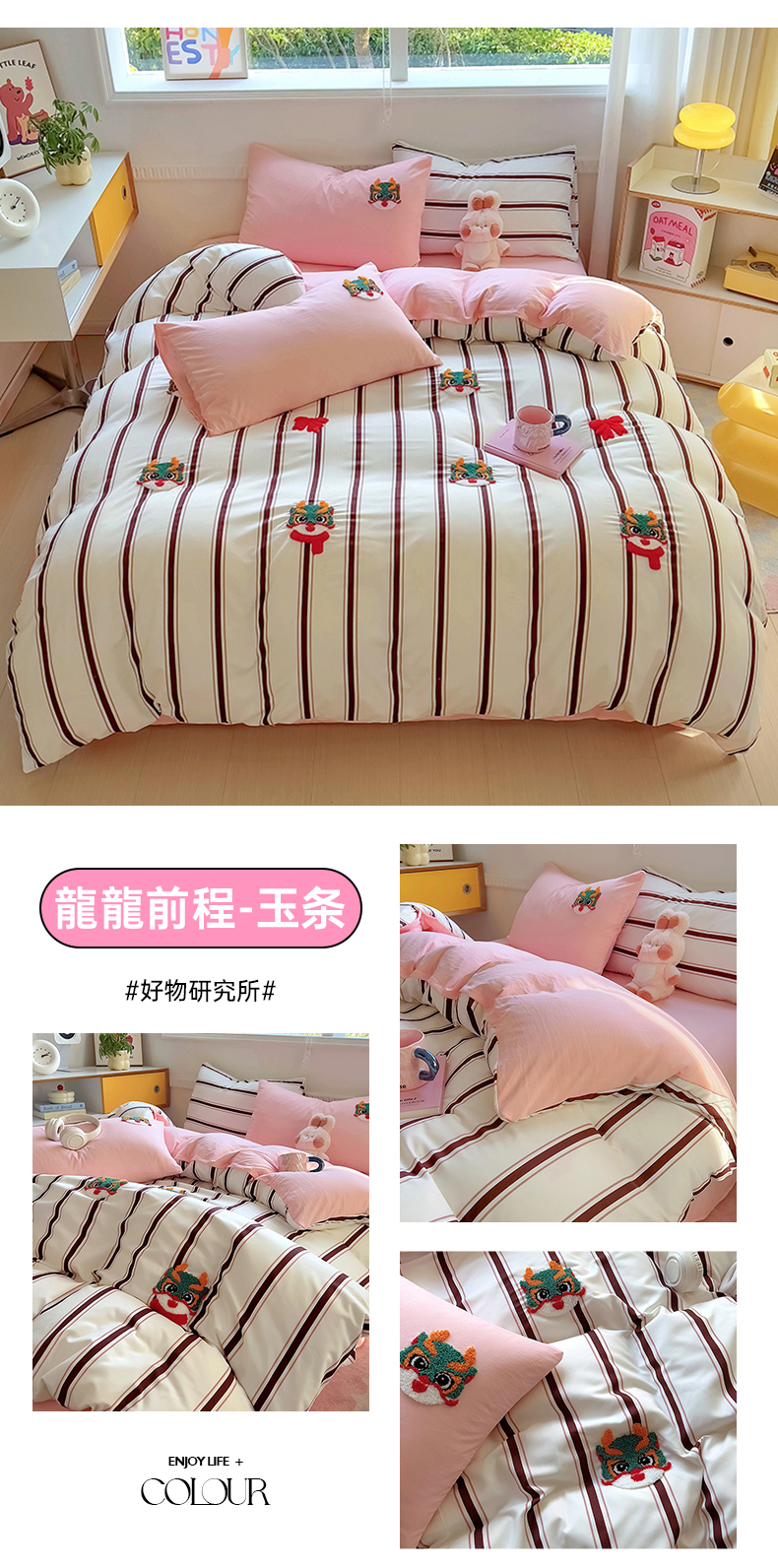 当前位置: 91家纺网 > 商品网购 > 床品套件 > 四件套 > 水洗棉四件套 > 易辰美 2024新款条纹水洗棉毛巾绣龙年限定四件套(专版) 龍龍前程-玉条