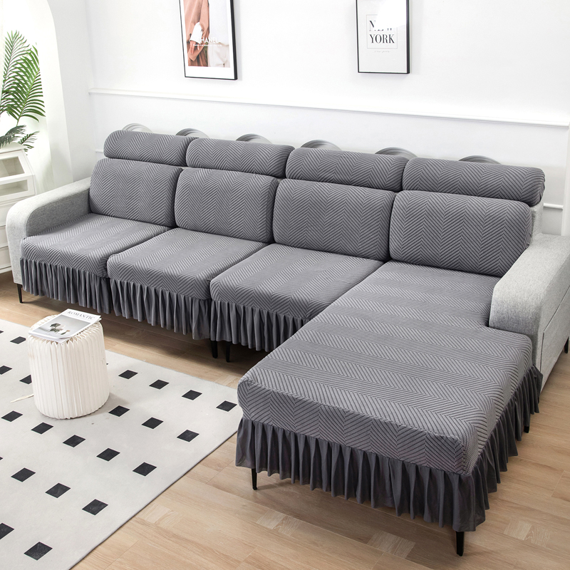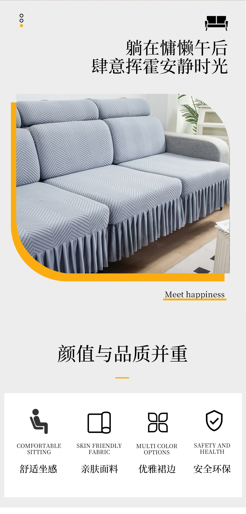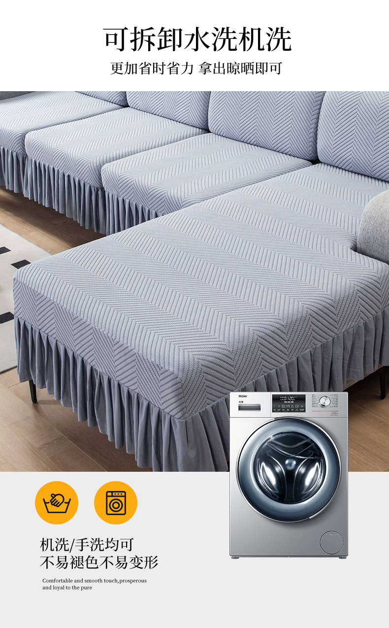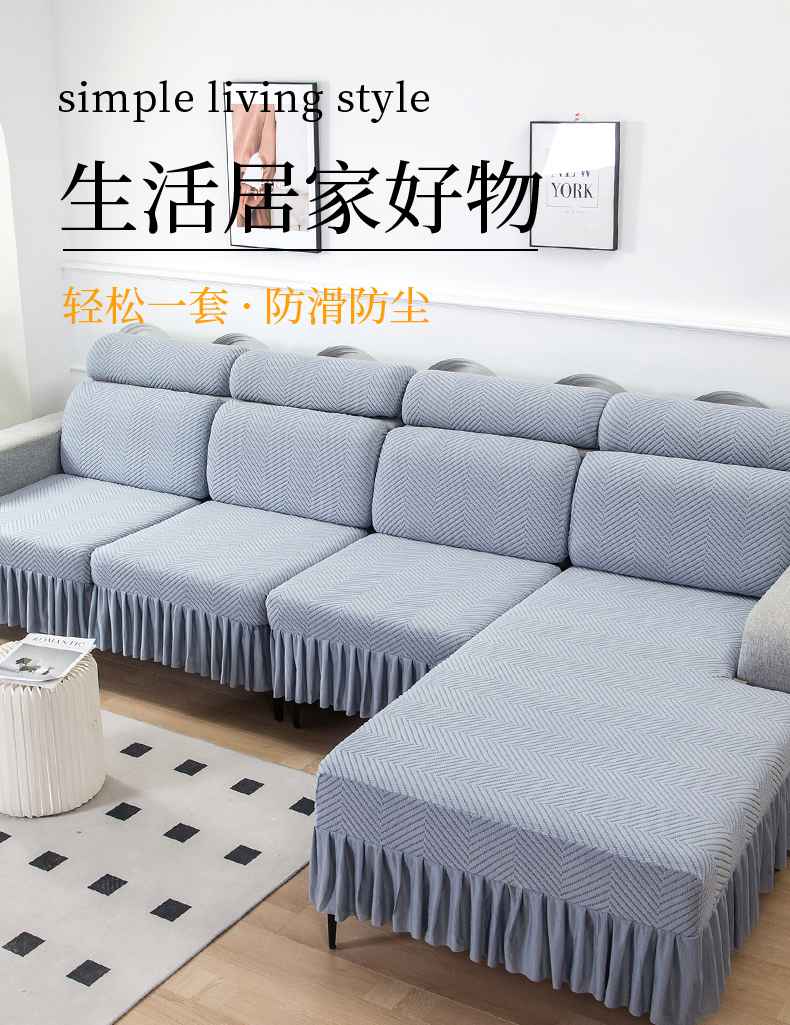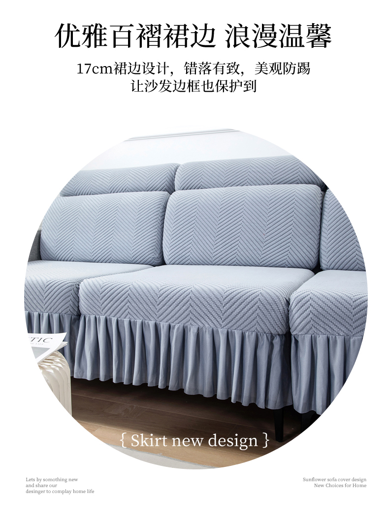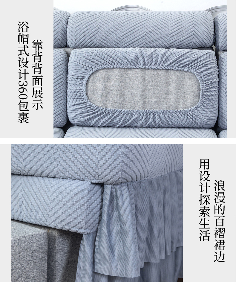 商品名称:(总)千彤 2024新款裙边款弹力沙发套罩拉花绒人字纹系列沙发笠