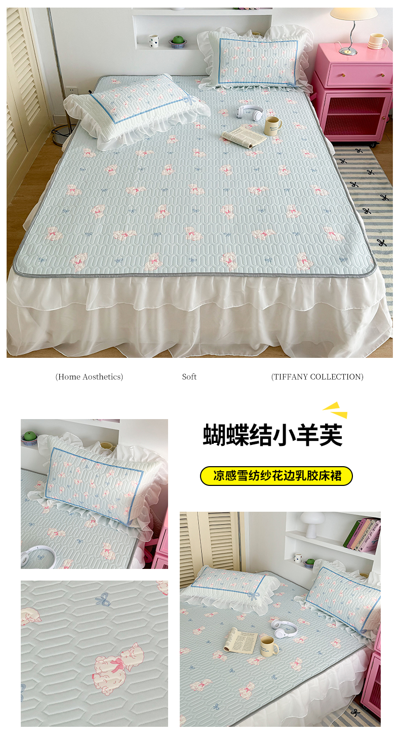 昔可 新款床裙款乳胶凉席双层雪纺纱乳胶凉席三件套 蝴蝶结小羊芙