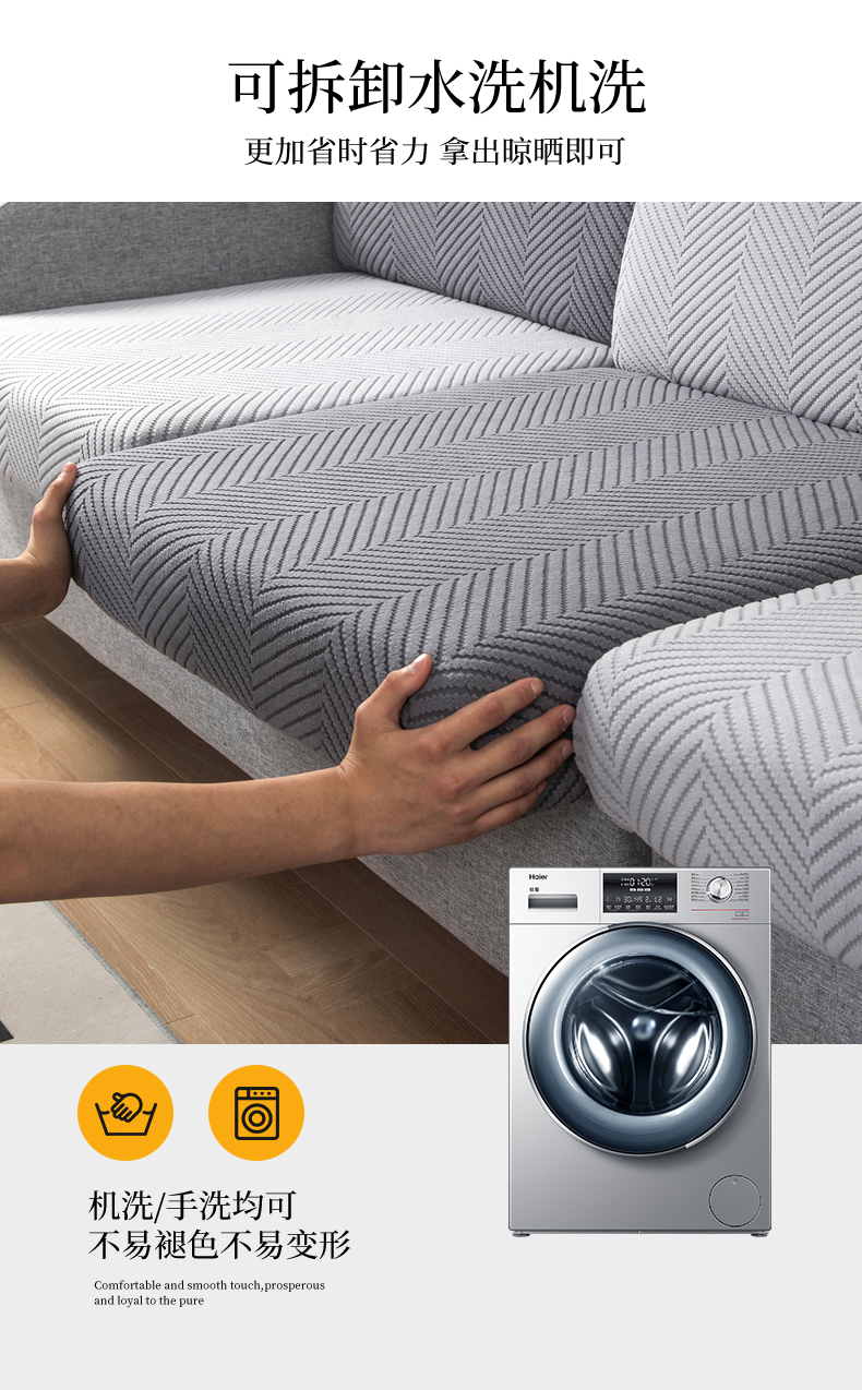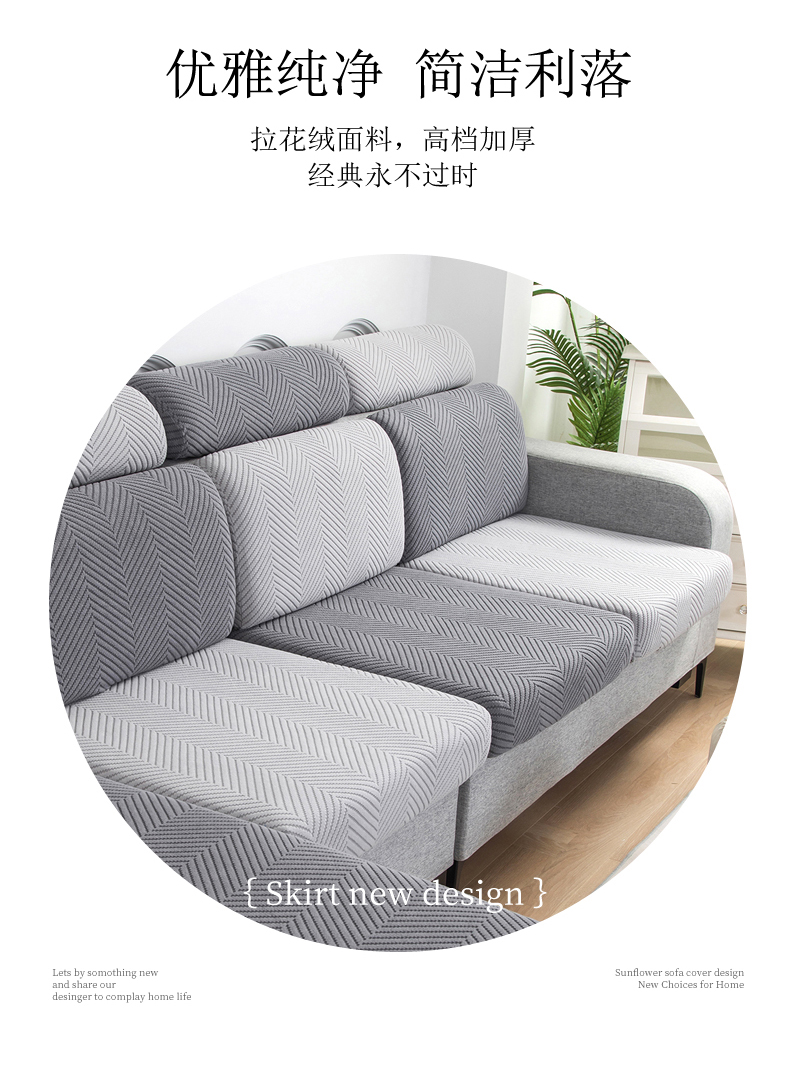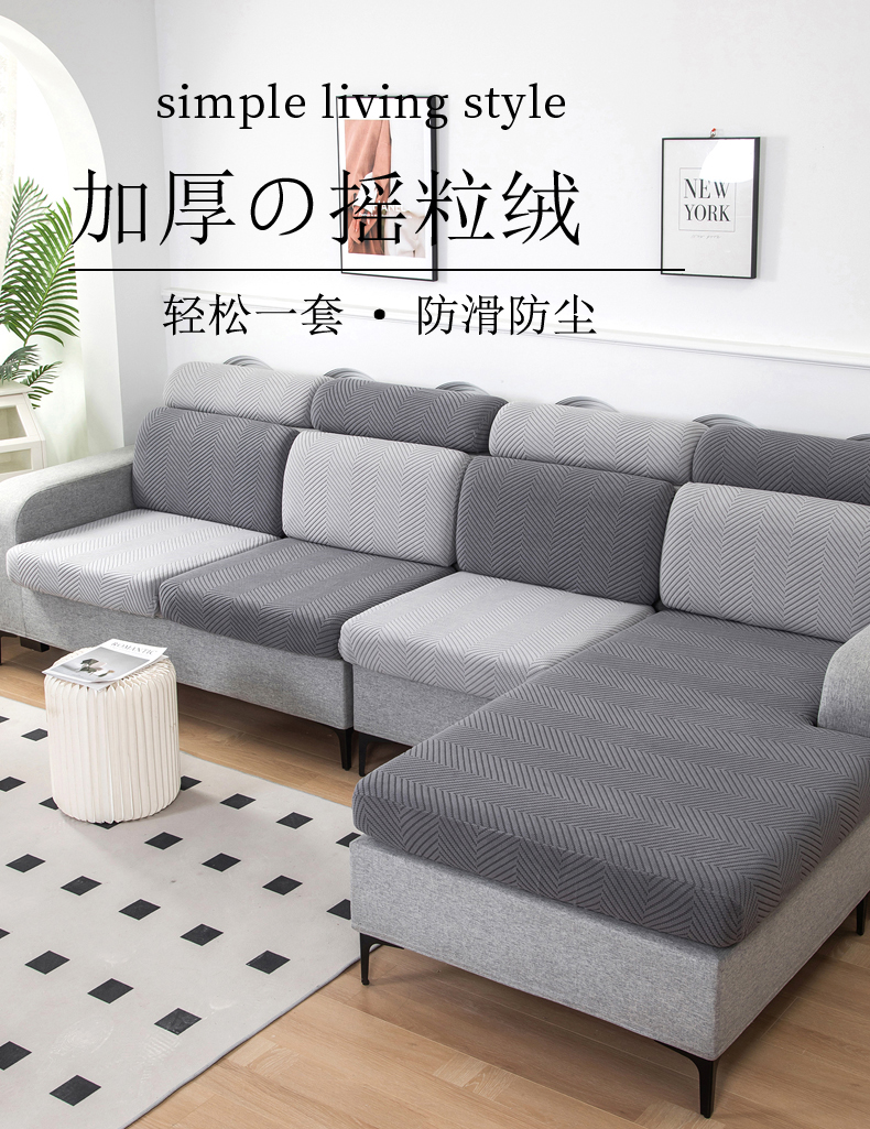 当前位置: 91家纺网 > 商品网购 > 居家布艺 > 坐垫/椅垫/沙发垫 > 沙发垫 > 千彤沙发垫 2024新款常规款拉花人字纹沙发套系列 深灰银灰