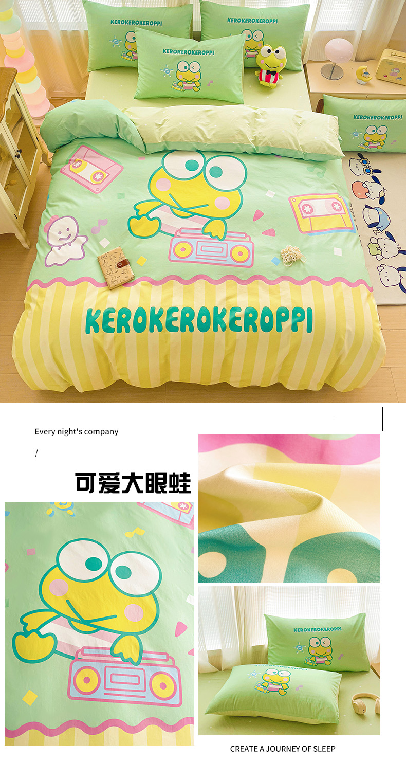 (总)朵希曼 2026新款三丽鸥全棉印花四件套系列,点点美乐蒂,红格凯蒂,蘑菇凯蒂,甜甜凯蒂,晚安大耳狗,樱桃凯蒂,元气美乐蒂,运动凯蒂