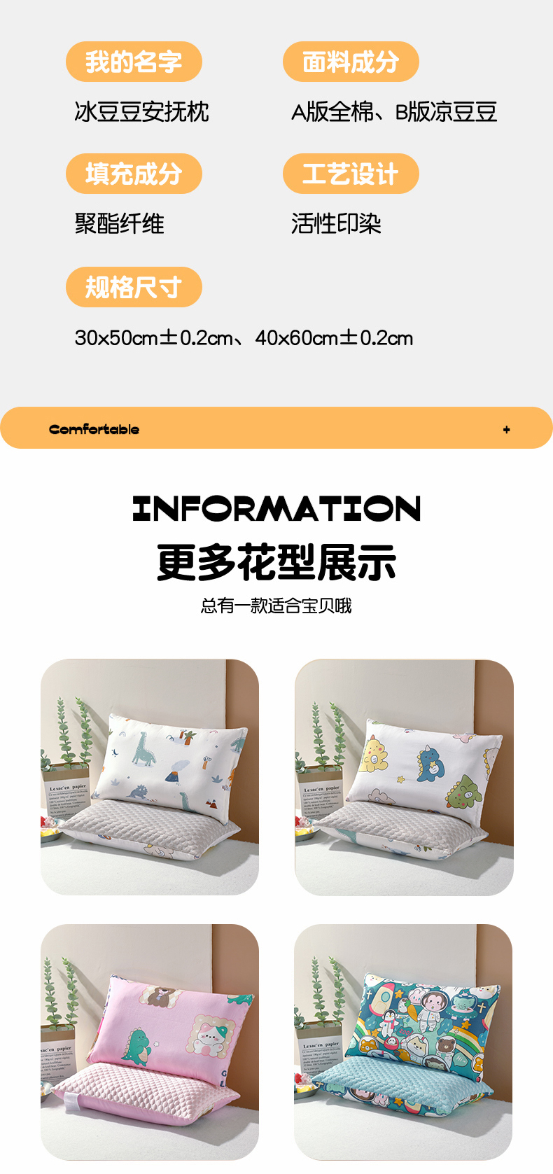 商品名称:(总)大熊枕芯 2024新款全棉冰豆豆枕套+枕芯款儿童枕芯