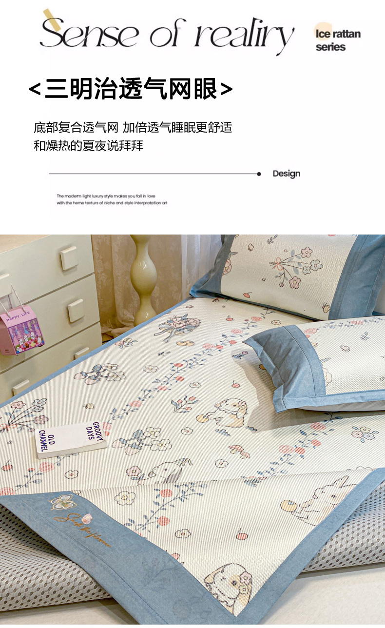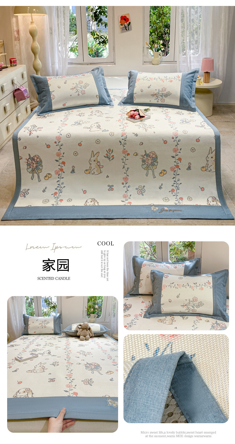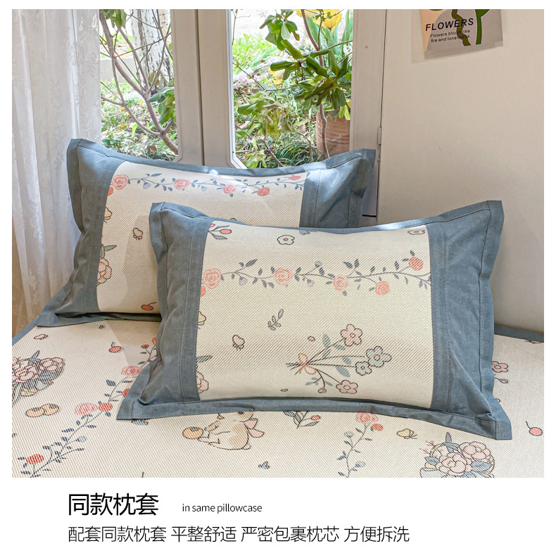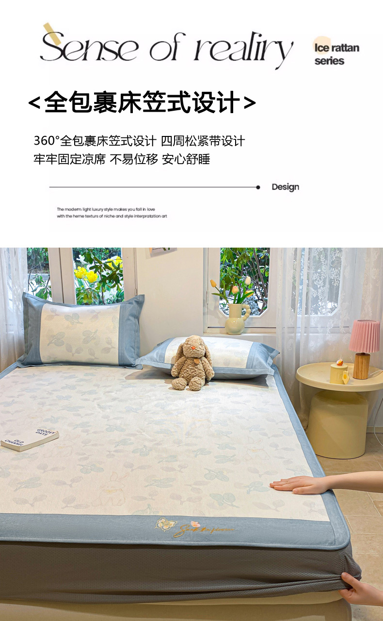 商品名称:慕澄2024新款A类时尚印花刺绣冰藤凉席 床席款-家园