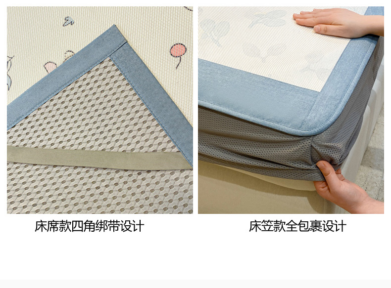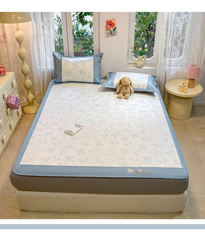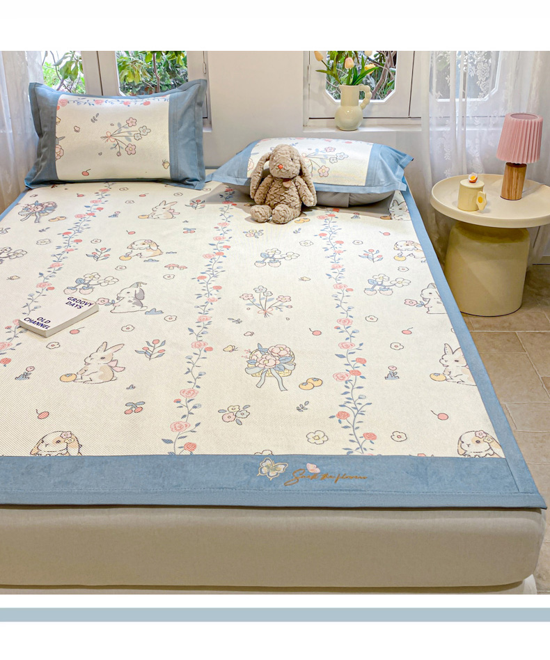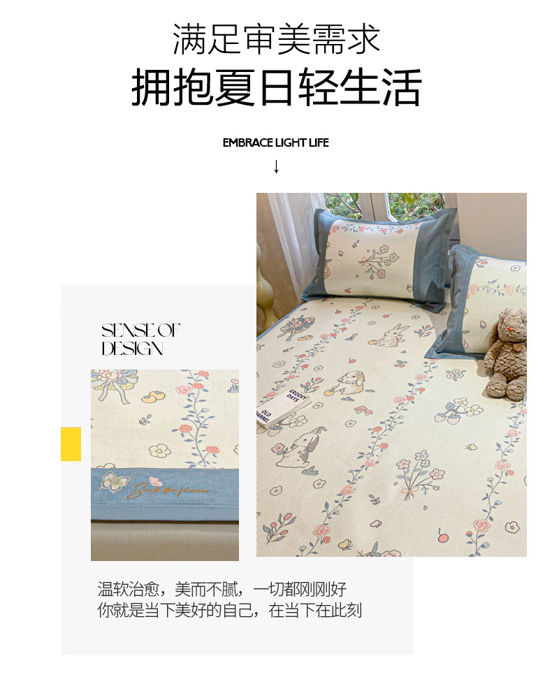 慕澄2024新款A类时尚印花刺绣冰藤凉席 床席款-家园