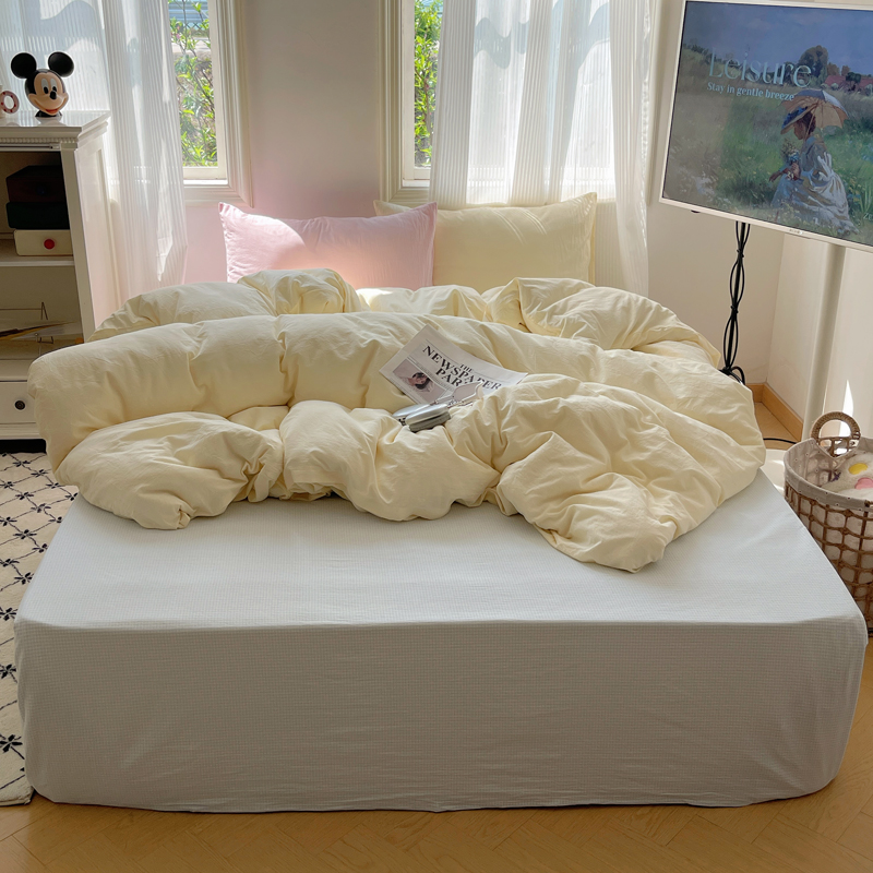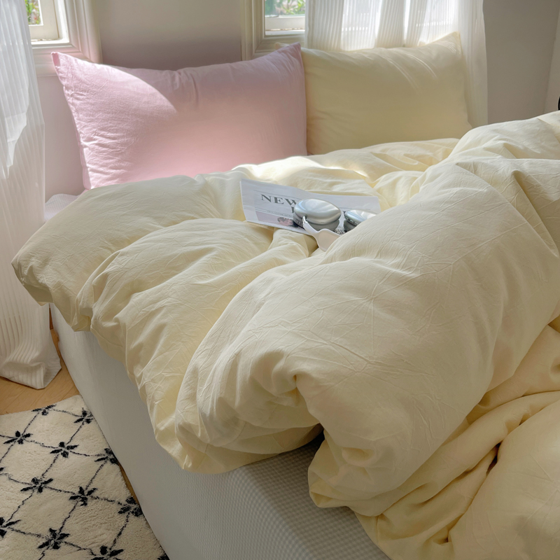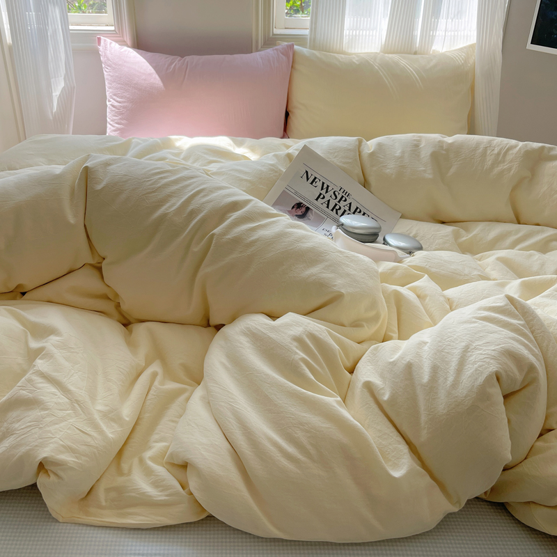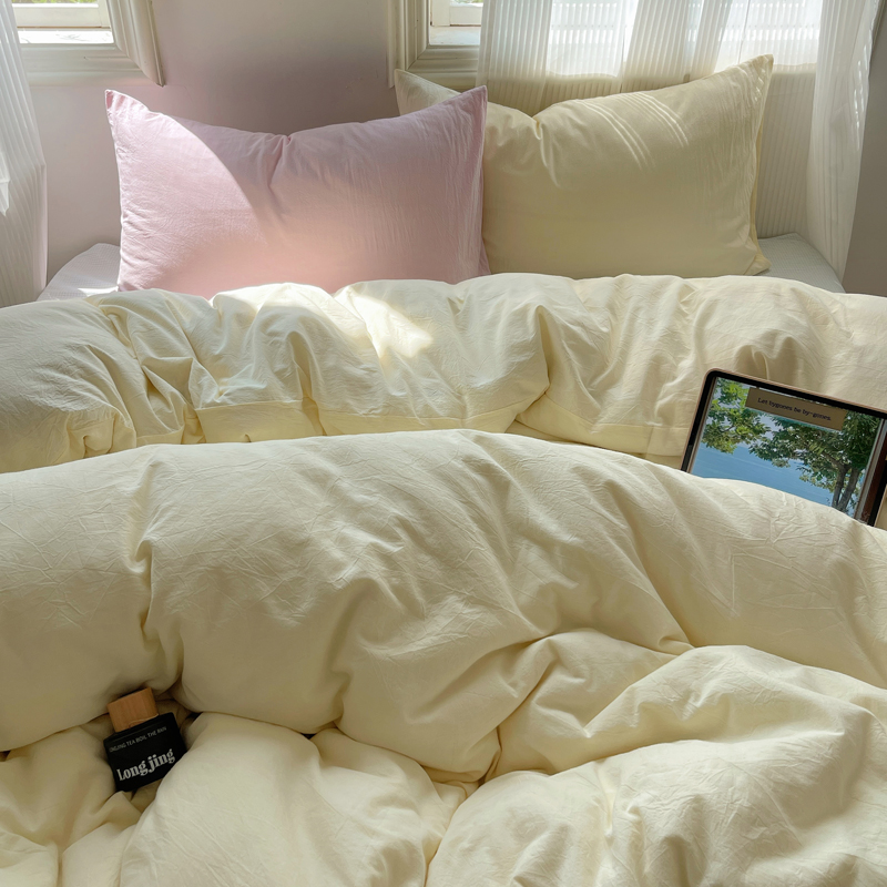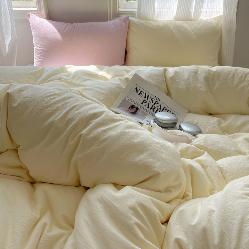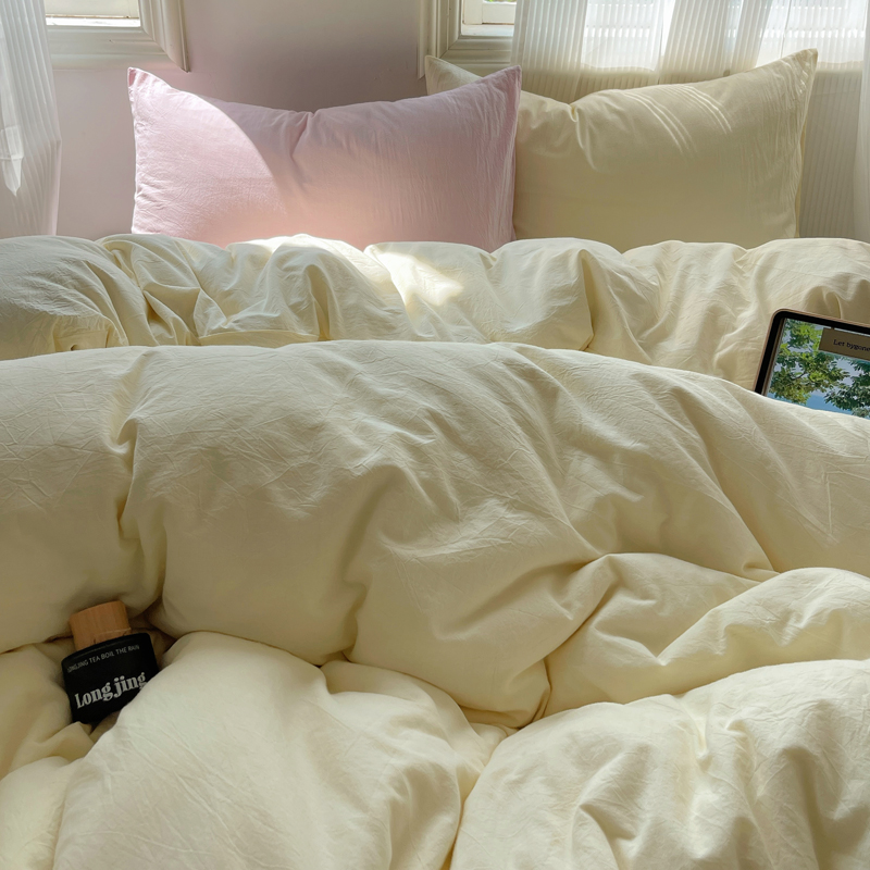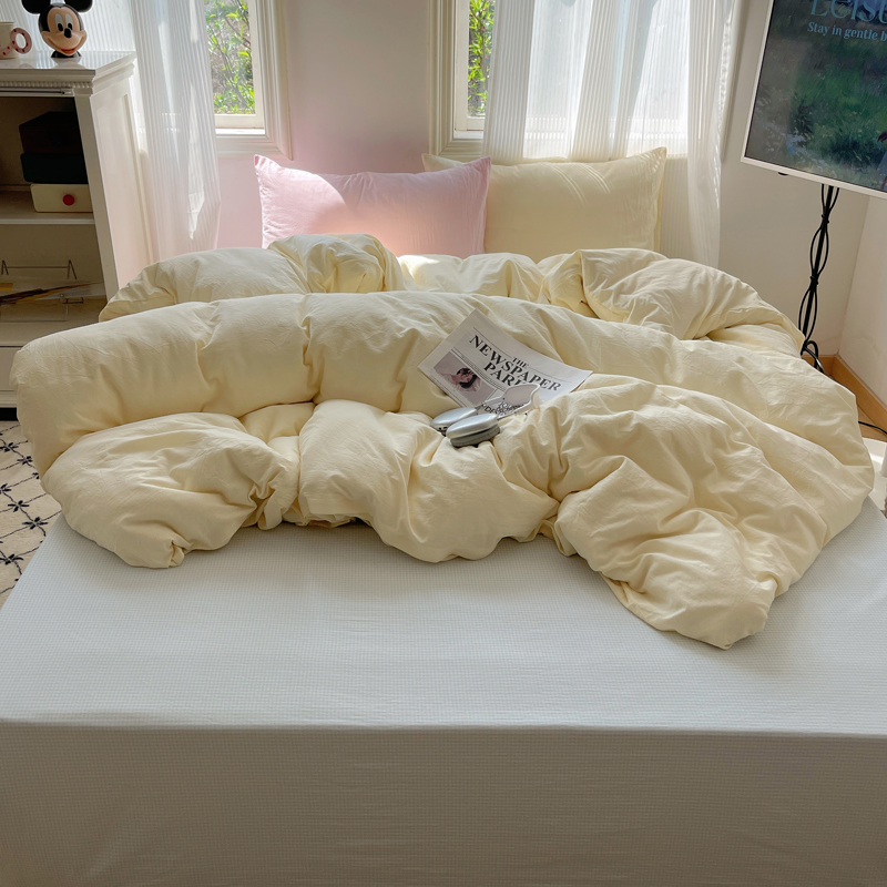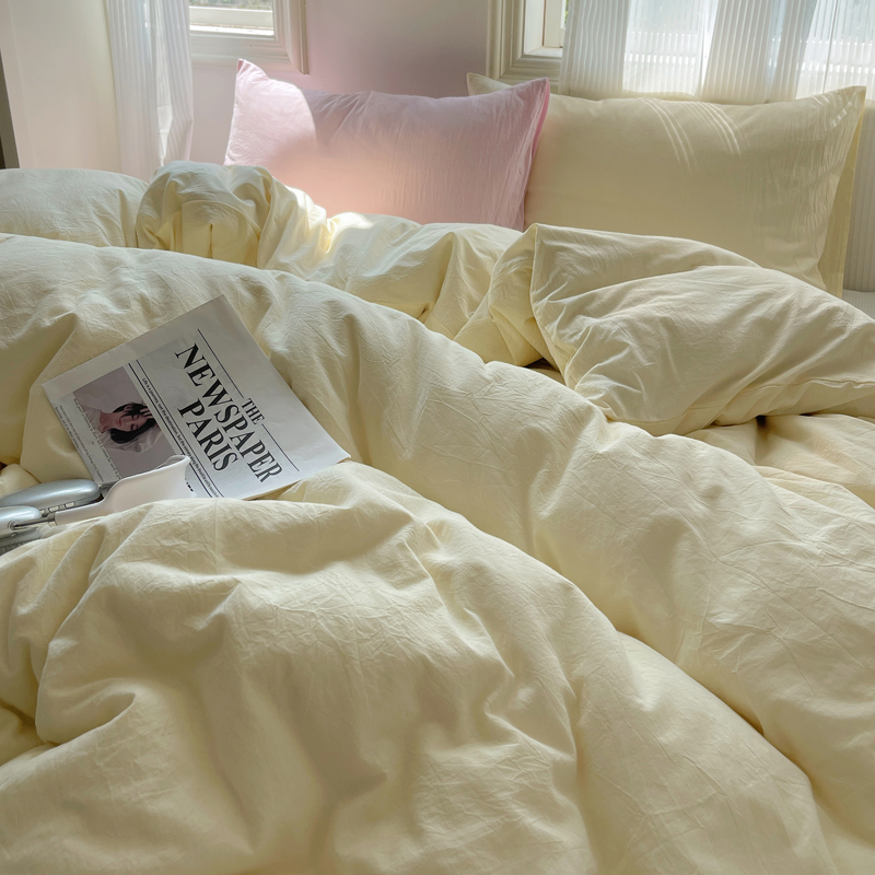 当前位置: 91家纺网 > 商品网购 > 床品套件 > 三件套 > 盼季家纺 2024新款小清新水洗棉小清新超软床上四件套纯色混搭学生宿舍三件套 奶黄小蓝格