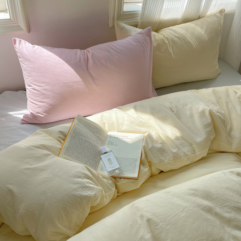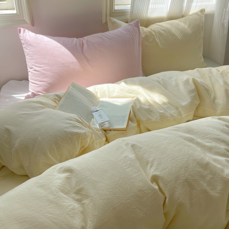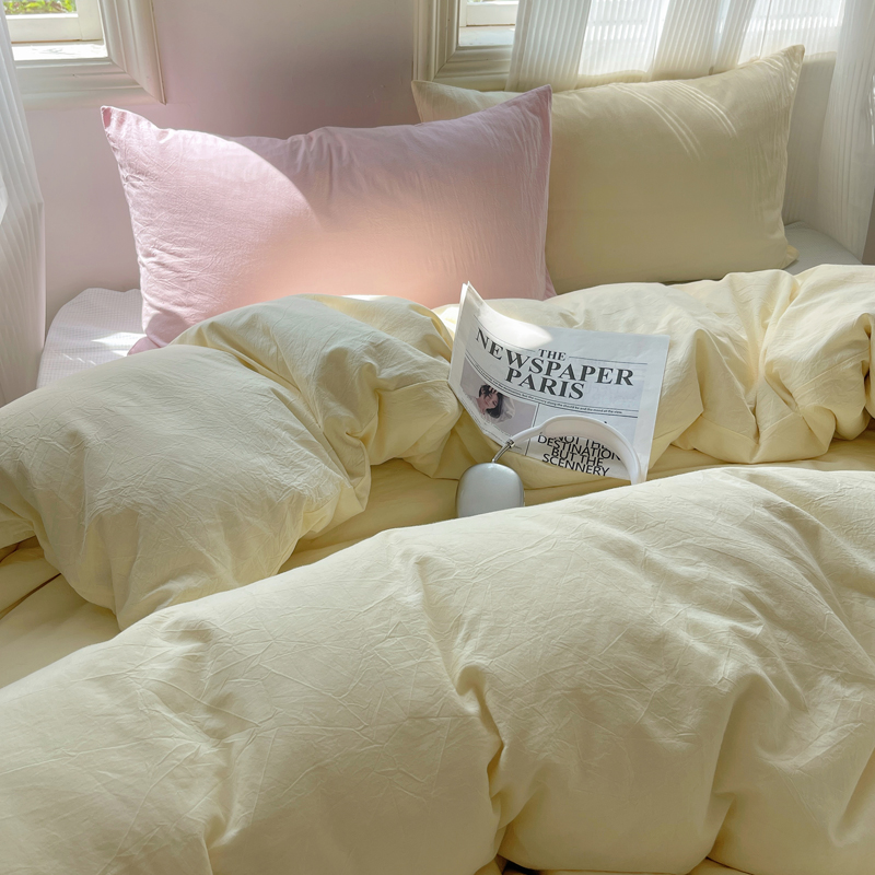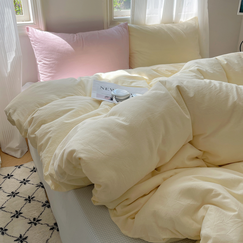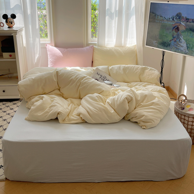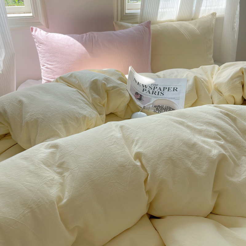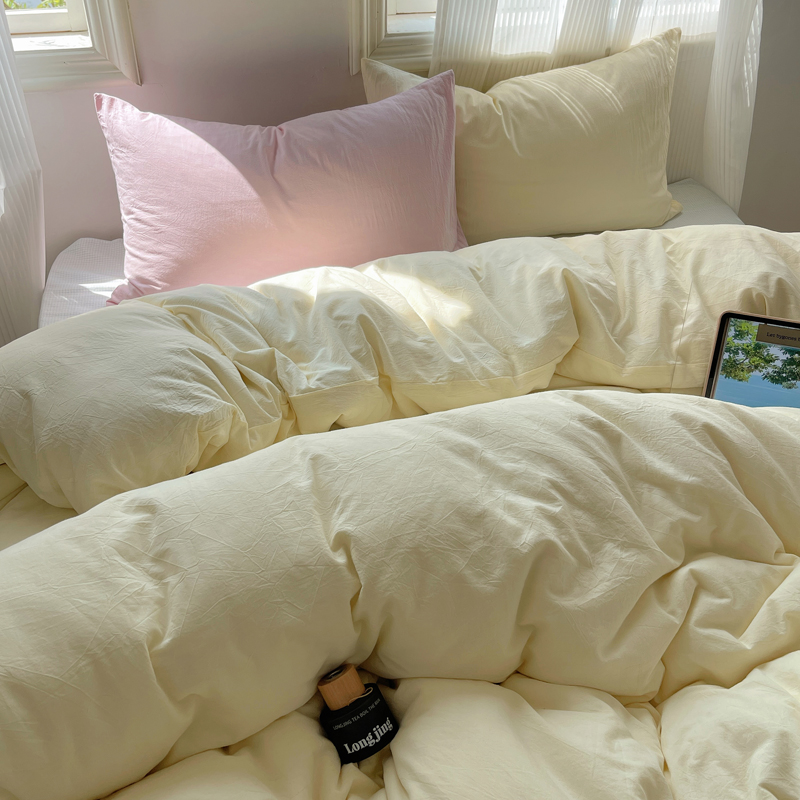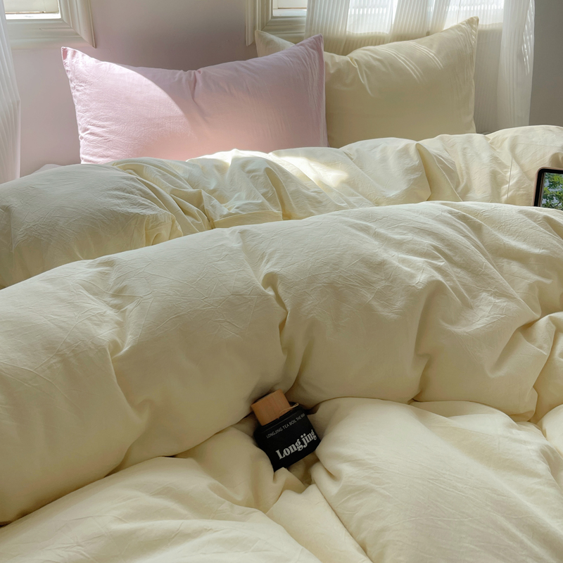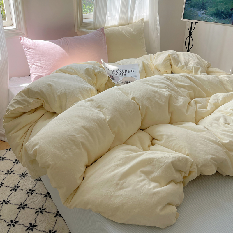 当前位置: 91家纺网 > 商品网购 > 床品套件 > 三件套 > 盼季家纺 2024新款小清新水洗棉小清新超软床上四件套纯色混搭学生宿舍三件套 奶黄小蓝格