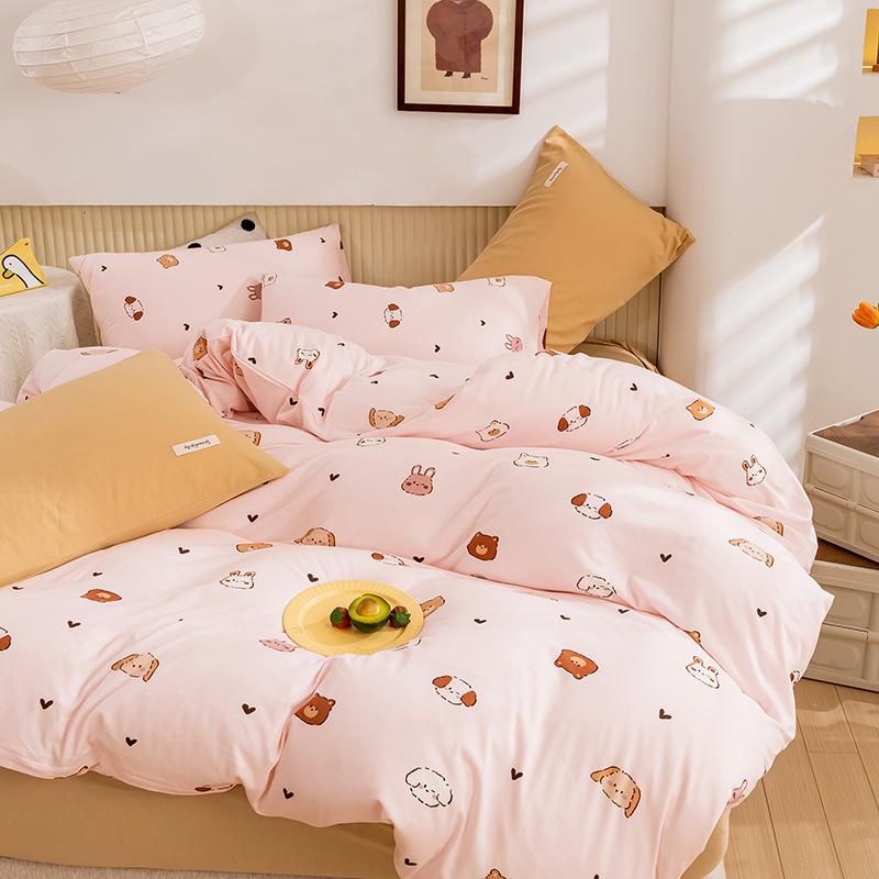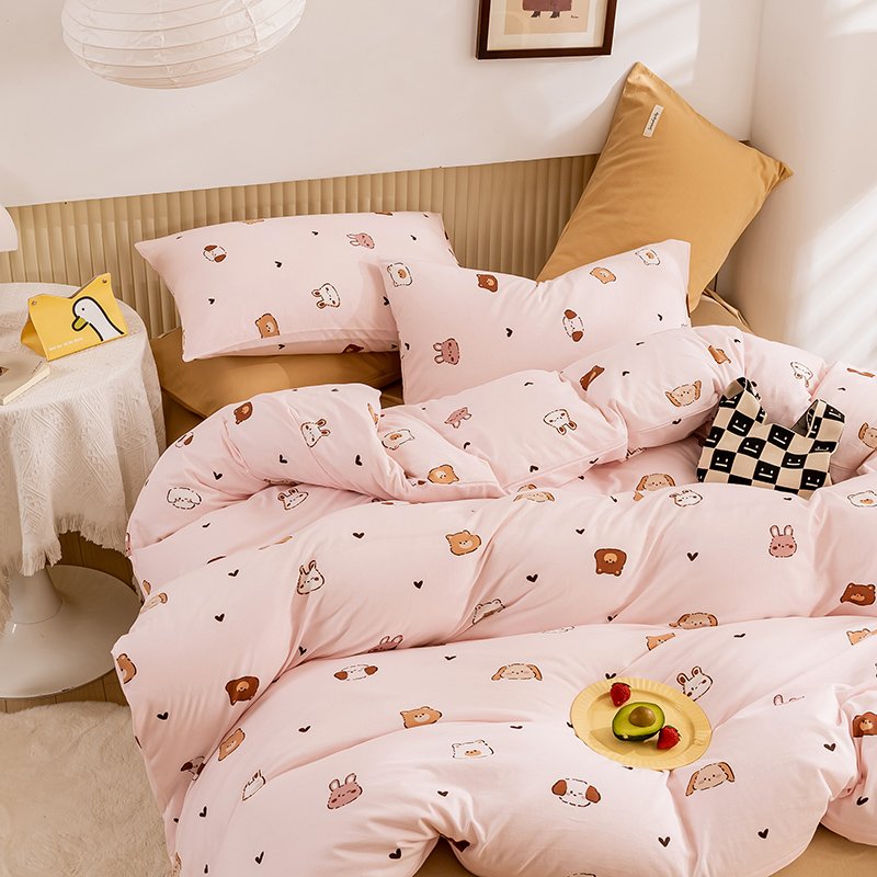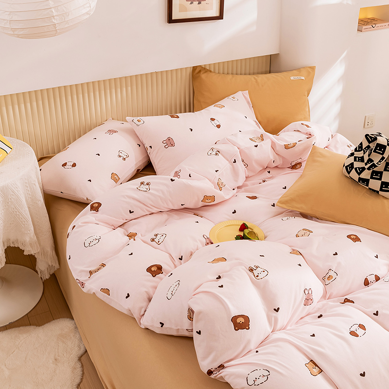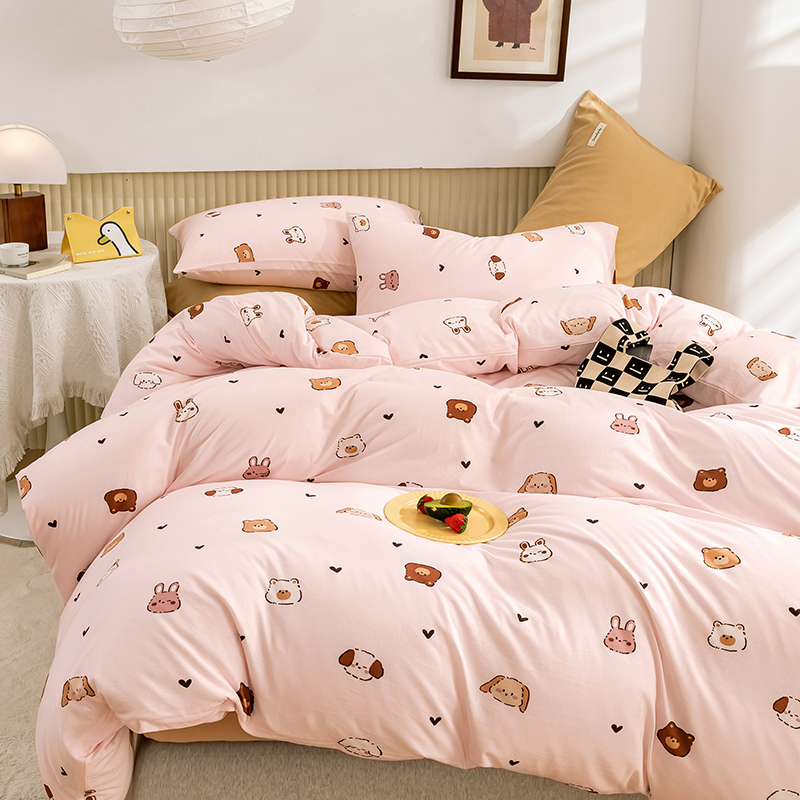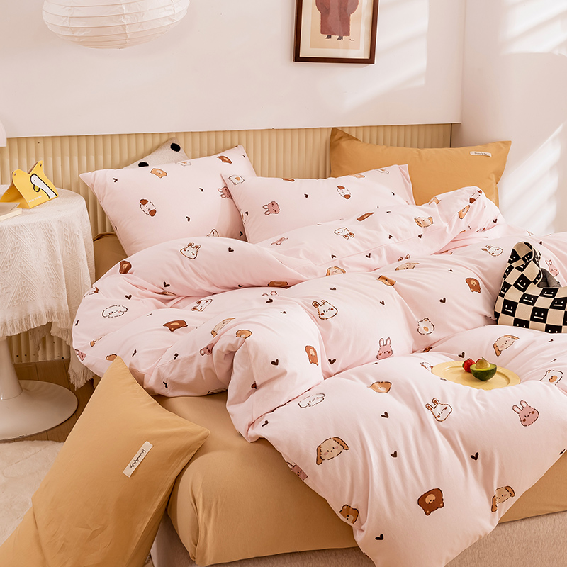 优姿家纺2024新款A类全棉针织棉系列四件套 维尼家族-粉