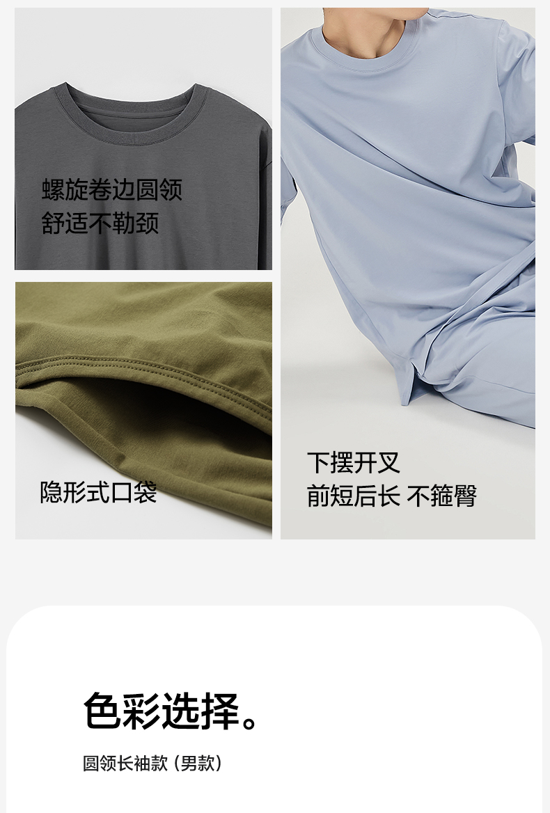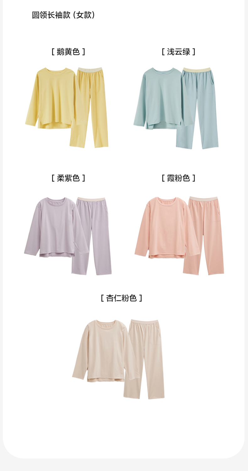 商品名称:EH 2024新款全棉男女情侣款家居服-男女款圆领 女款浅云绿