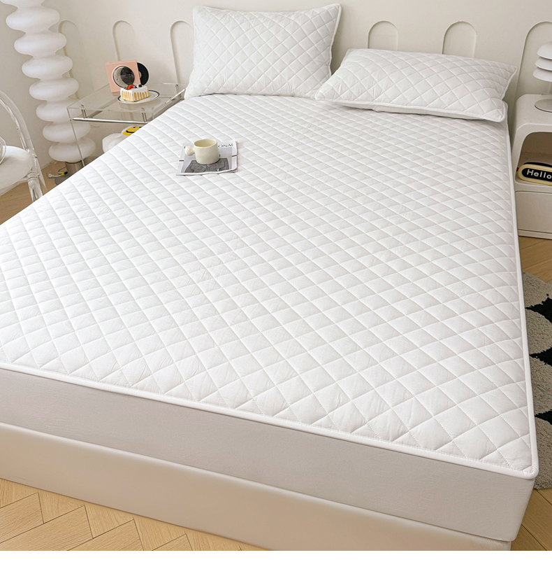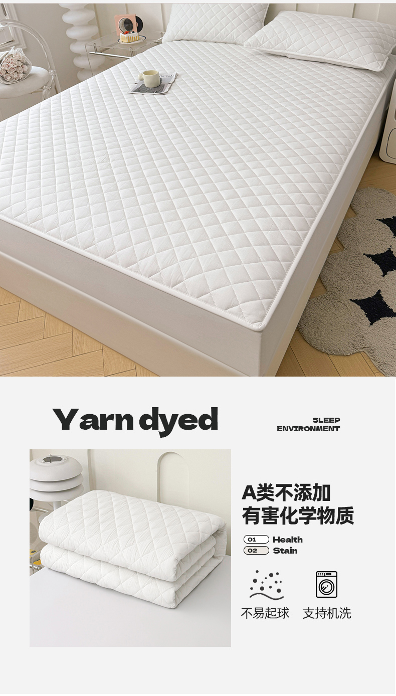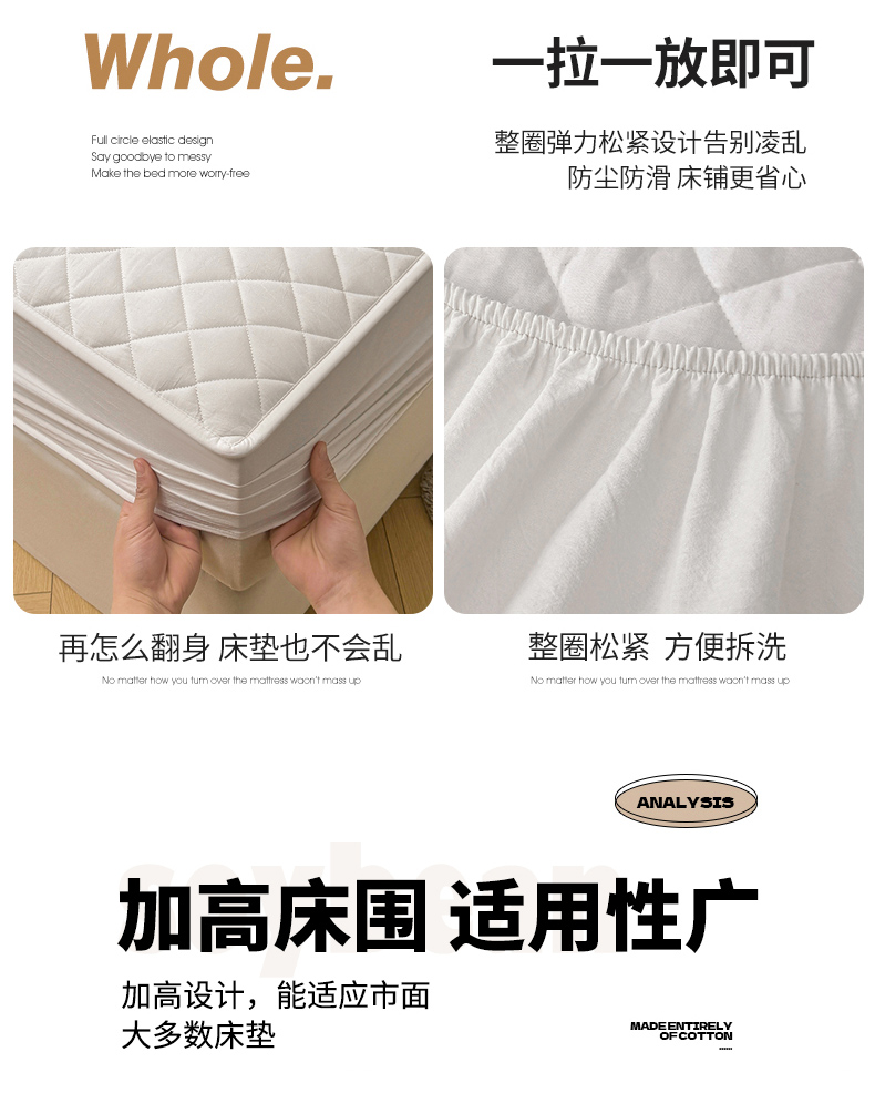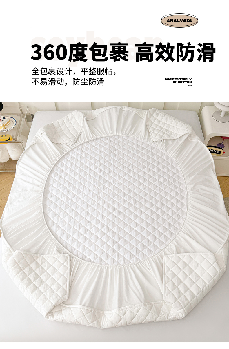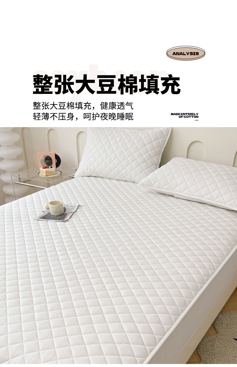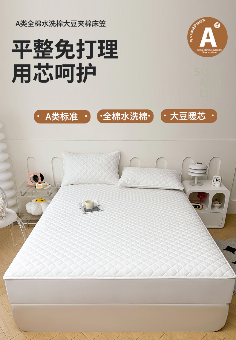 糯米猪家纺 2024新款全棉水洗棉大豆夹棉床笠 奶油白
