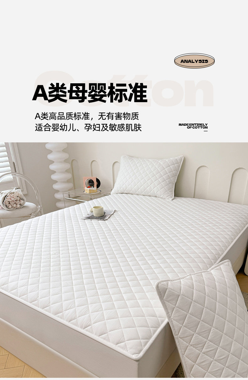 (总)糯米猪家纺 2025春夏新款亲肤棉六面全包防水压花床笠单件单床笠,组合图仅供展示,典雅白,高级灰,静谧绿,浅卡其,水雾蓝,樱花粉