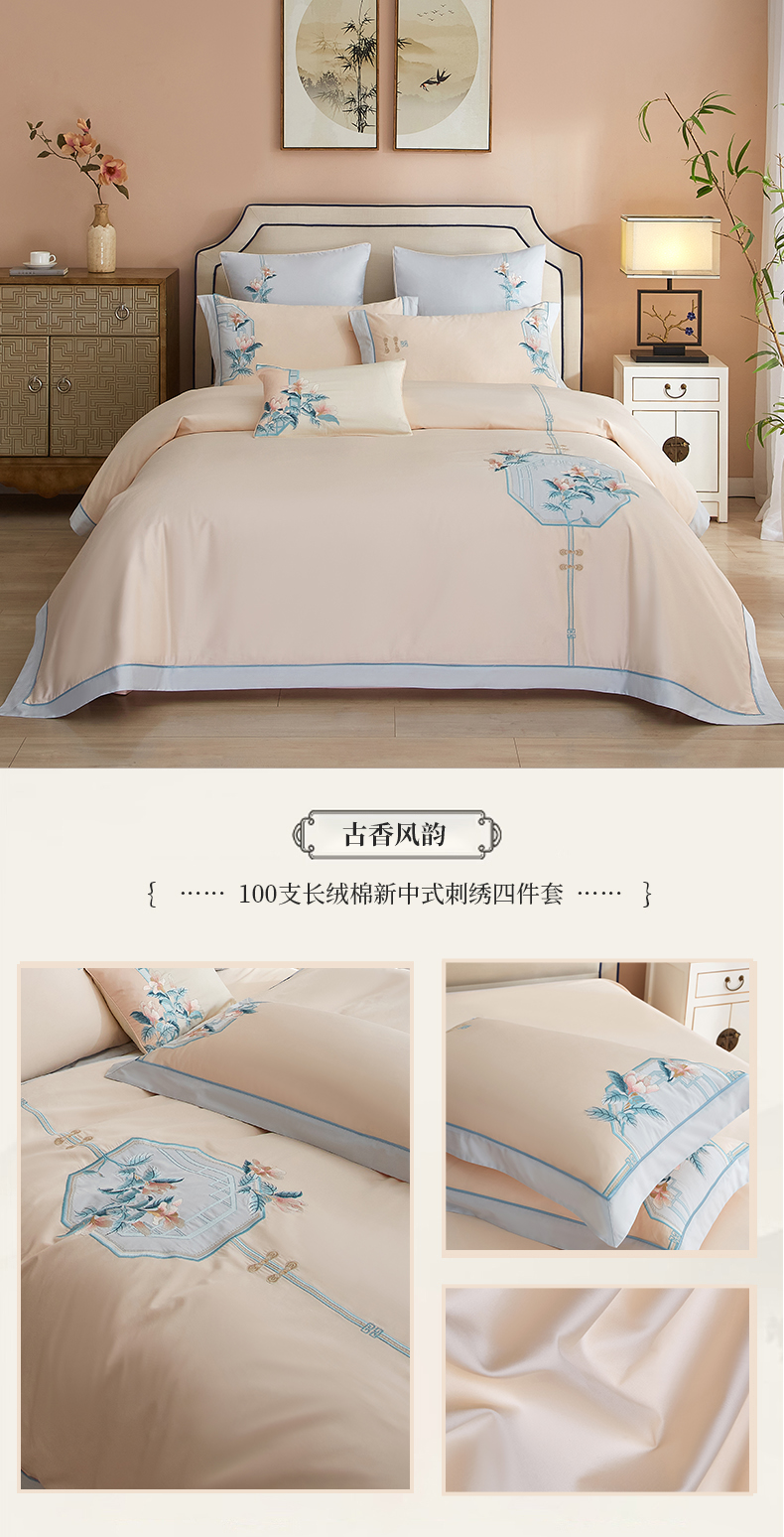 (总)50支50S长绒棉刺绣四件套新中式工艺款,荷塘月色粉 控价478-498元,荷塘月色玉 控价478-498元,翩翩起舞 控价478-498元,温馨满园粉玉 控价478-498元,温馨满园芋紫 控价478-498元,玉露清华 控价478-498元