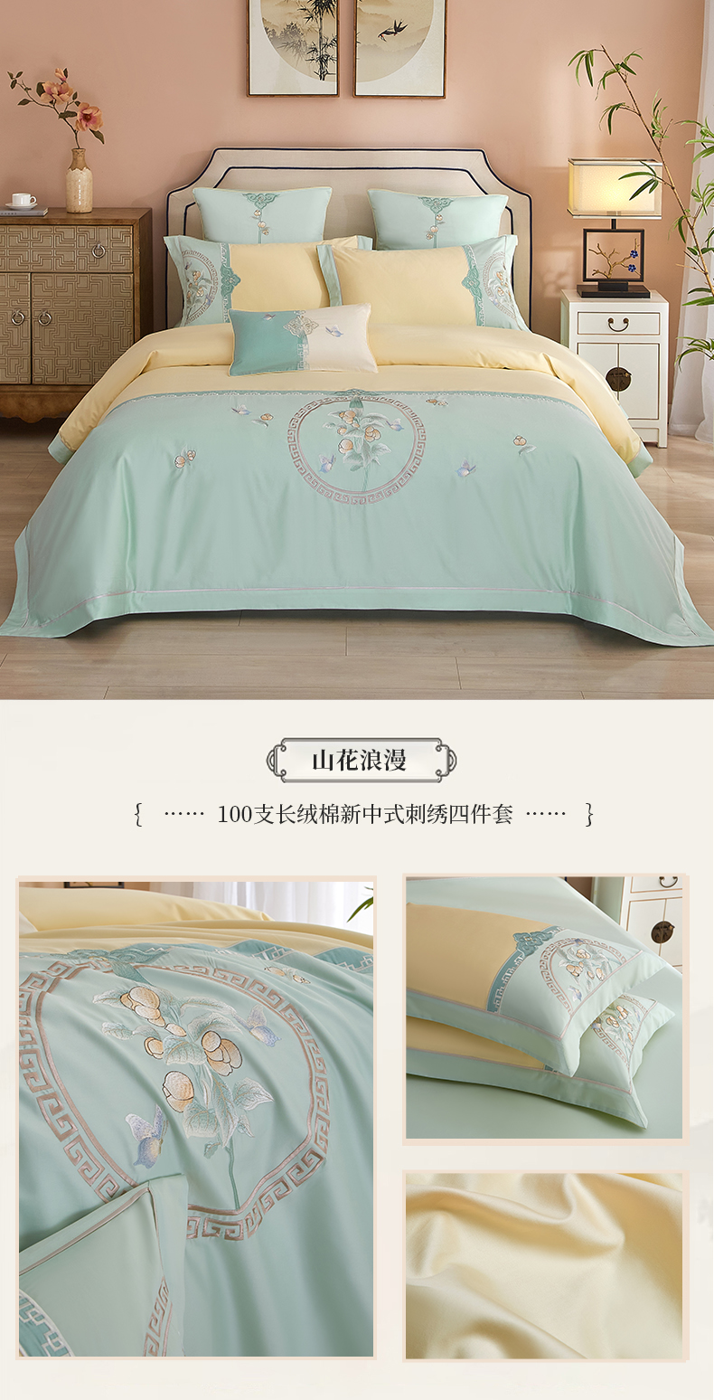 商品名称:【2024】50S50支澳棉刺绣长绒棉四件套全棉新中式花卉直播爆款线下批发 山花浪漫