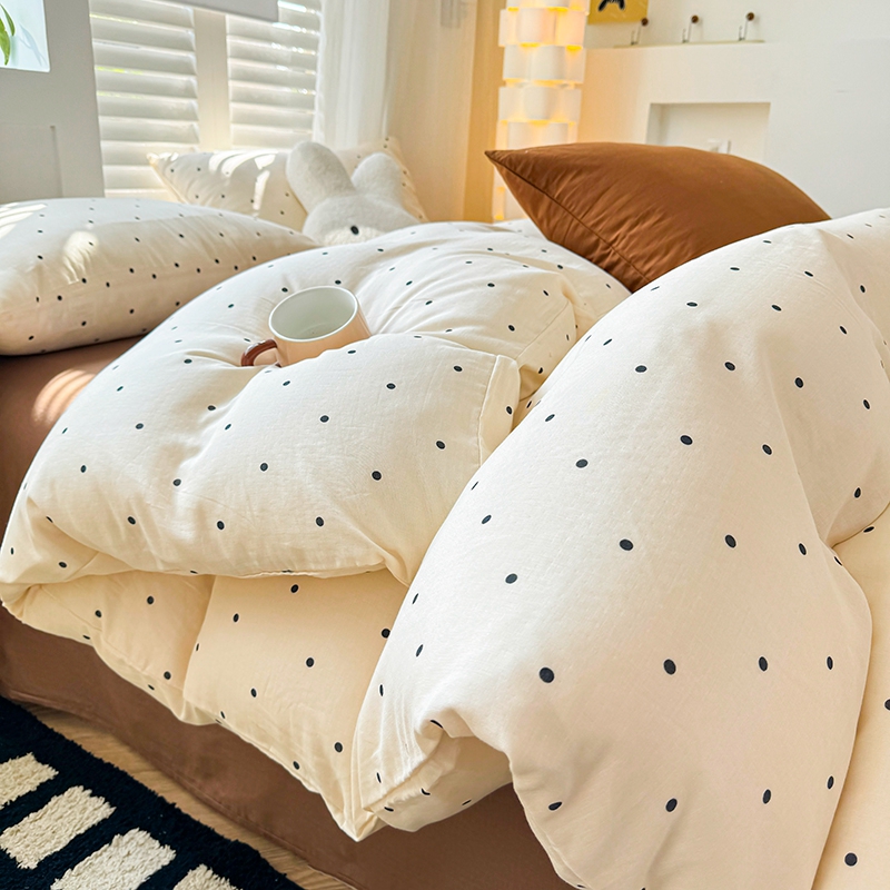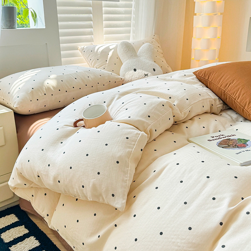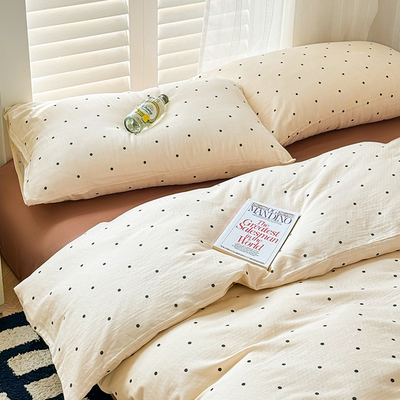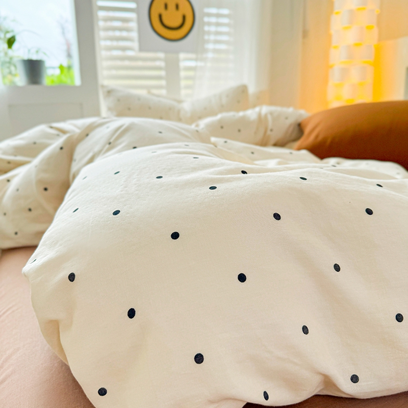 当前位置: 91家纺网 > 商品网购 > 床品套件 > 四件套 > 全棉普通四件套 > 麦伦家居 2024新款A类全棉双层纱系列四件套-影棚图 黑波波