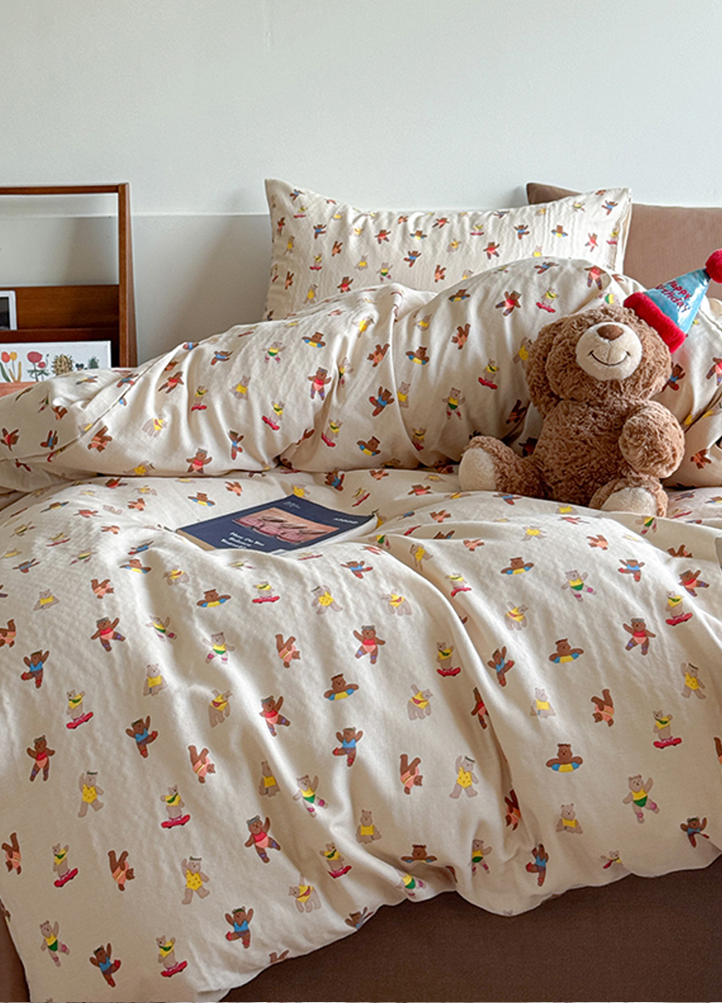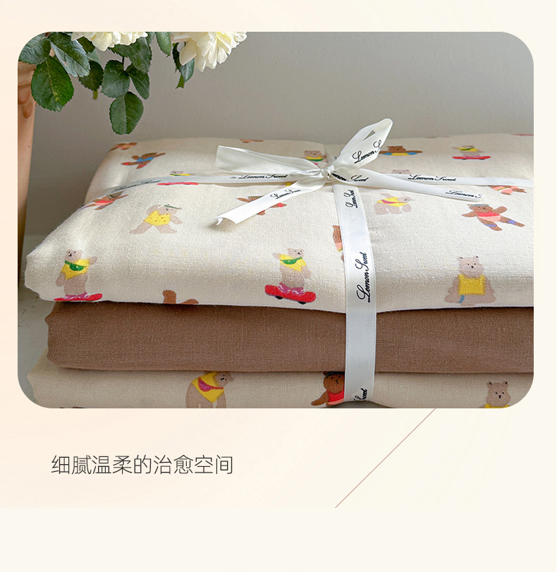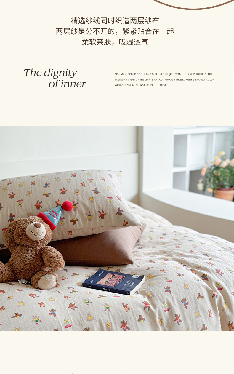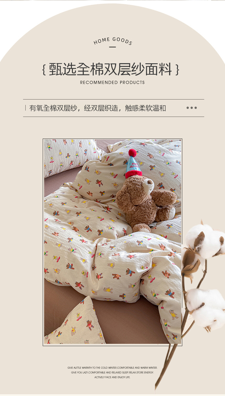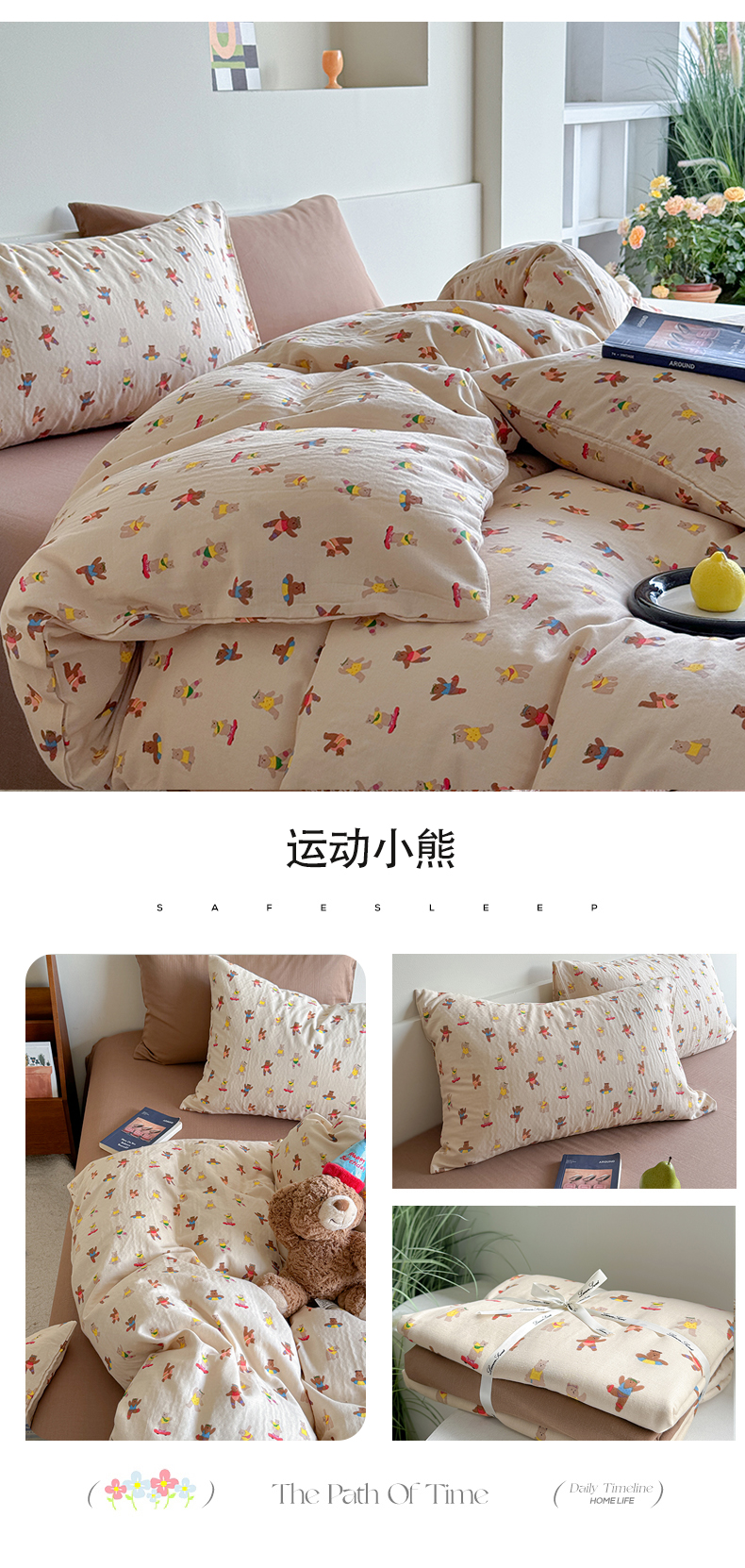 当前位置: 91家纺网 > 商品网购 > 床品套件 > 四件套 > 全棉普通四件套 > 麦伦家居 2024新款A类全棉双层纱系列四件套-影棚图 运动小熊