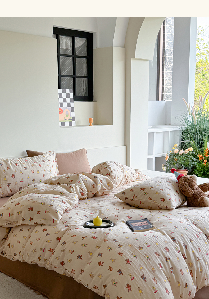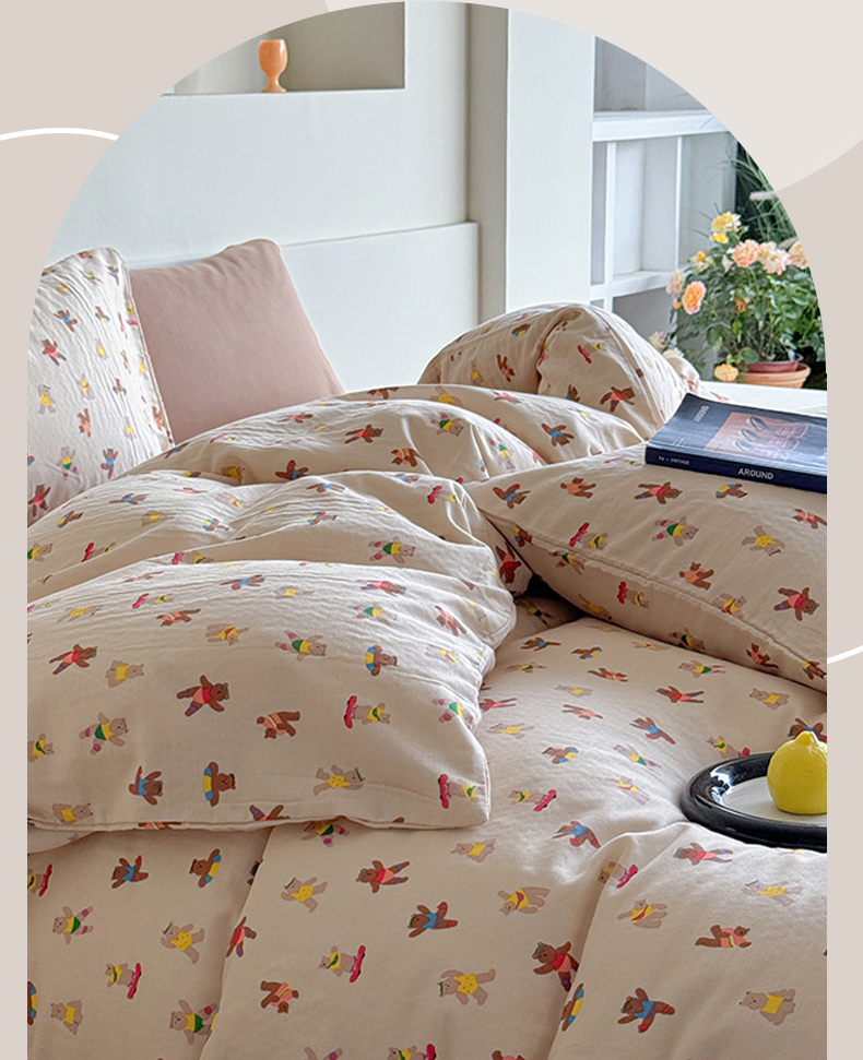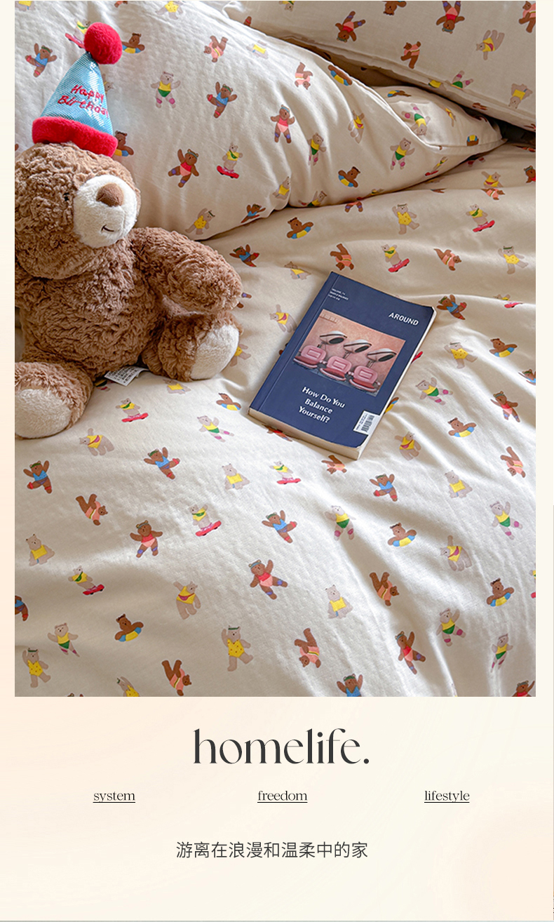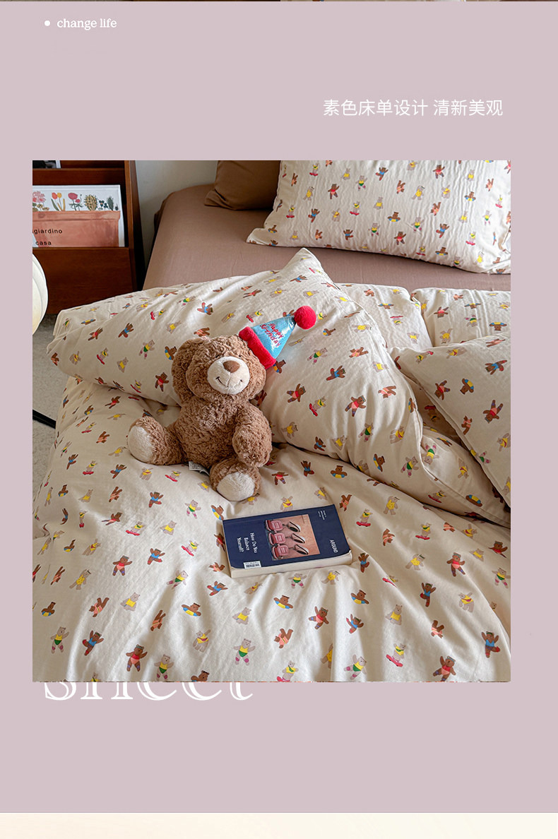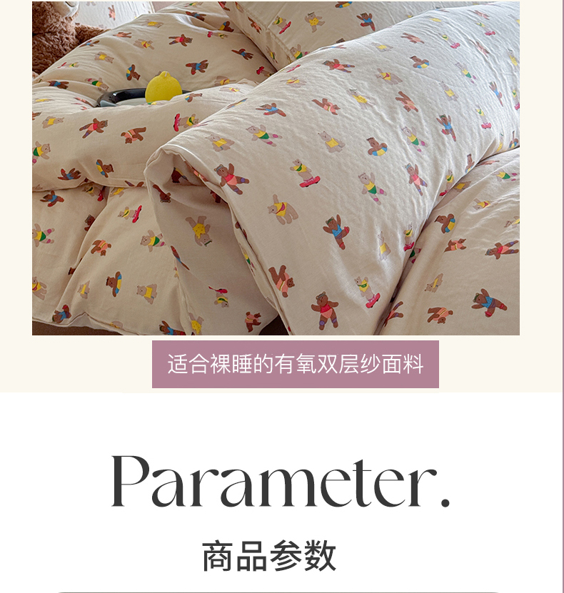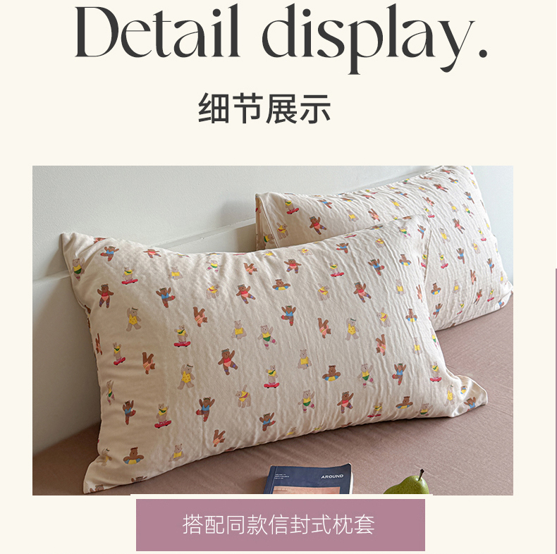 当前位置: 91家纺网 > 商品网购 > 床品套件 > 四件套 > 全棉普通四件套 > 麦伦家居 2024新款A类全棉双层纱系列四件套-影棚图 运动小熊