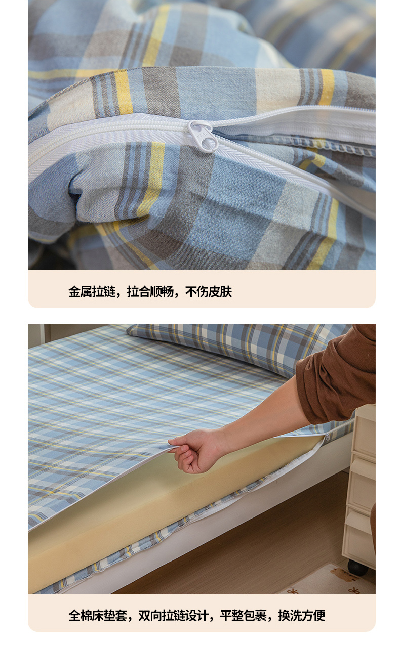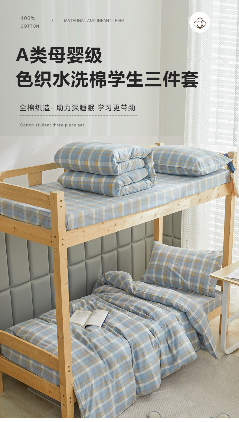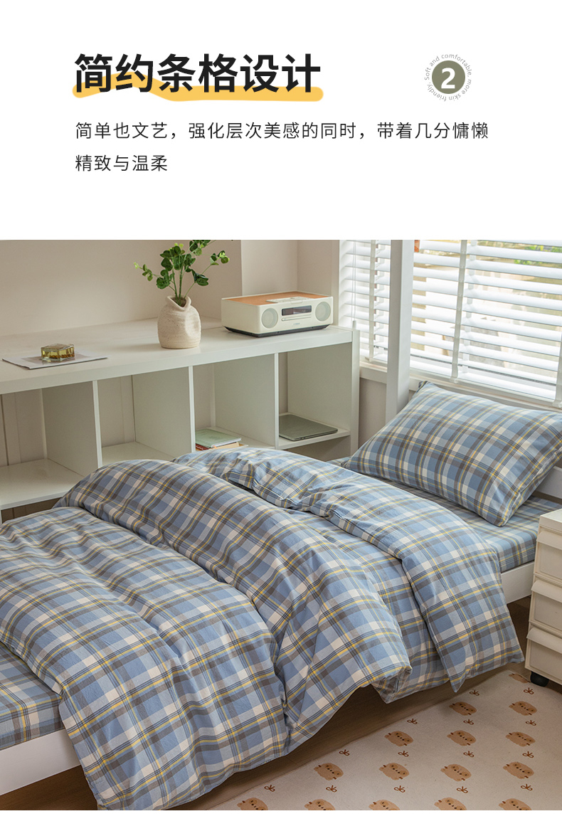 当前位置: 91家纺网 > 商品网购 > 床品套件 > 四件套 > 全棉普通四件套 > 柠萌家居 2025新品A类全棉色织水洗棉简约条纹格子无印良品风格学生季宿舍上下铺AA版三件套四件套 遇见兰格