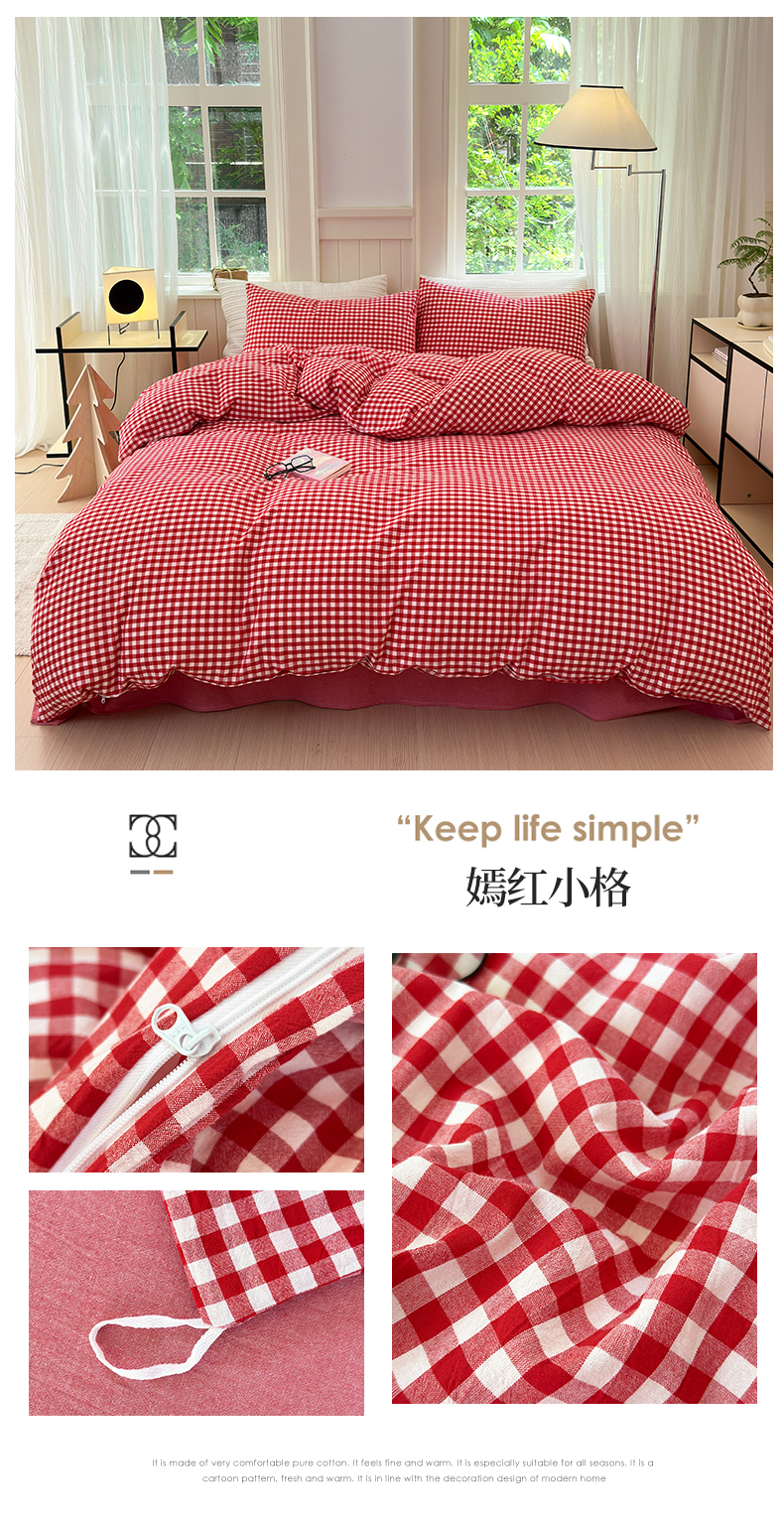 商品名称:北欧良品 2024新款A类全棉色织水洗棉单被套 嫣红小格