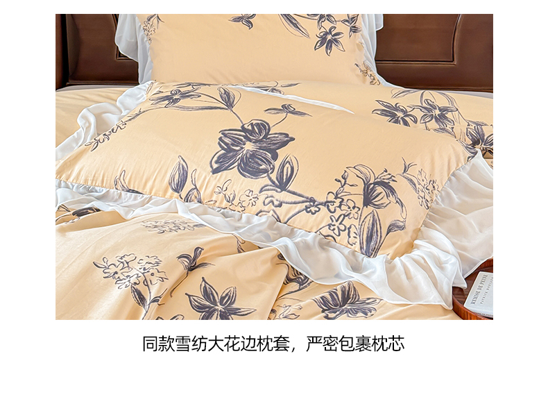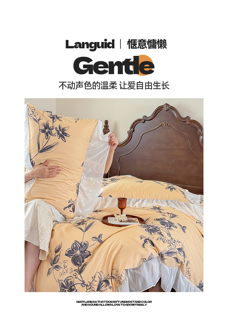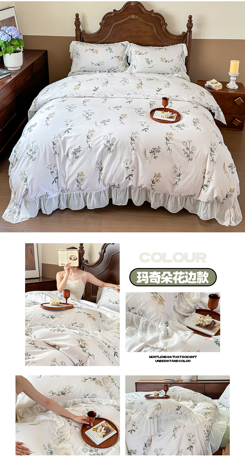 (总)窝米 2025新款数码印花100支长绒棉纯棉工艺花边款四件套-晚意,晚意