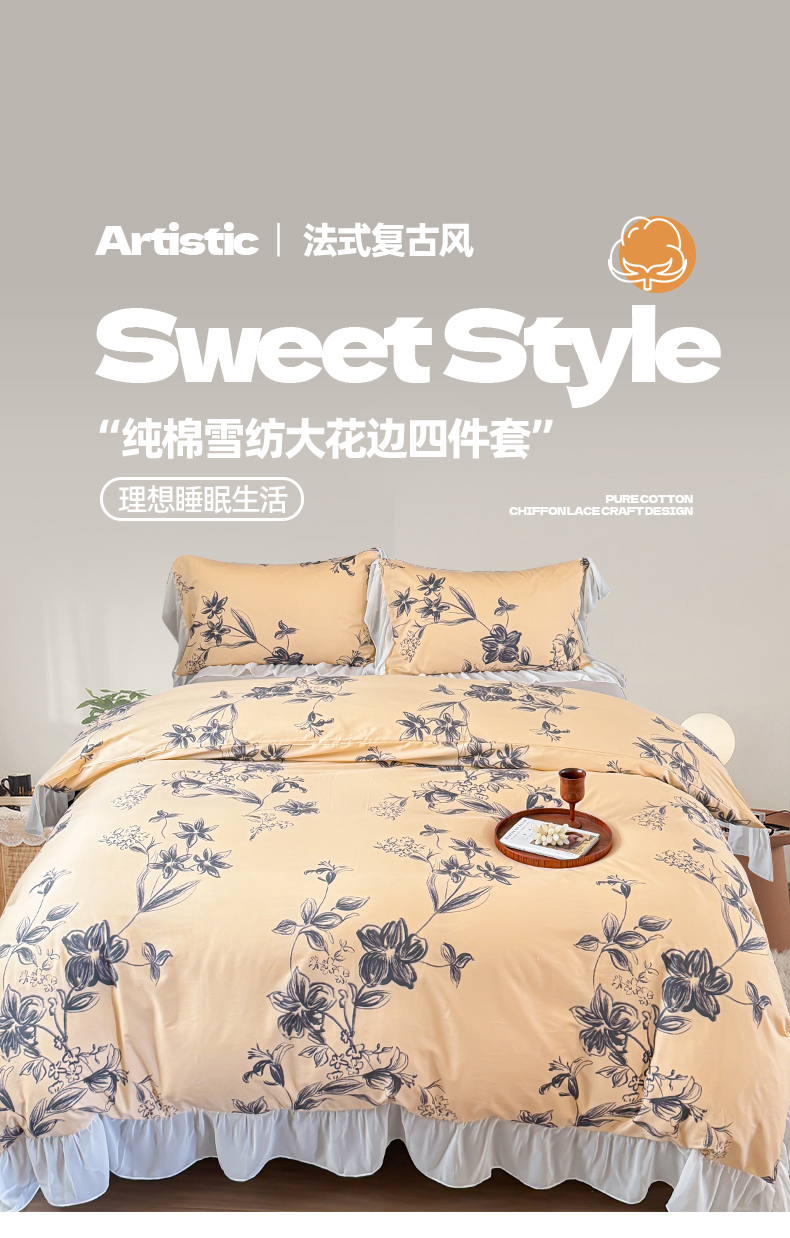 (总)窝米 2024夏季纯棉法式复古雪纺大花边四件套系列第二批