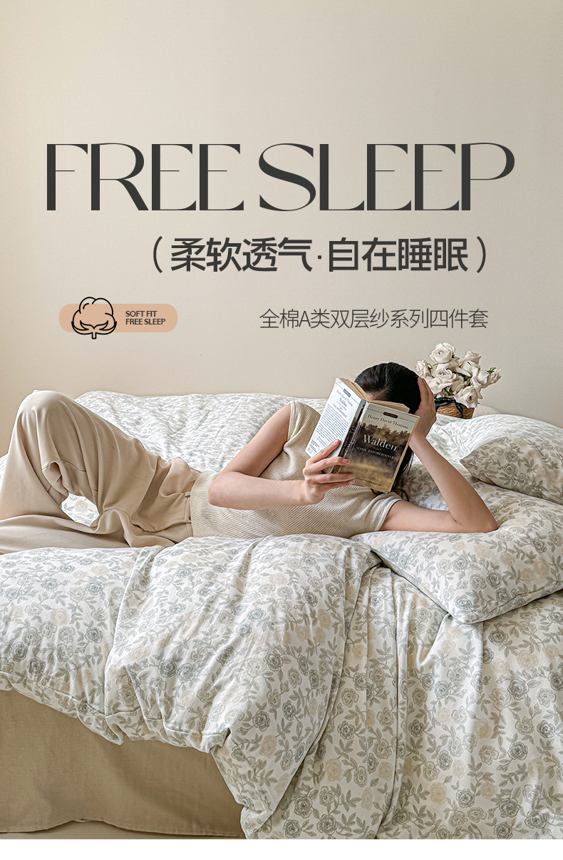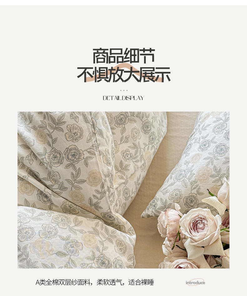 (总)窝米 2025新款全棉纯棉双层纱大版印花花卉四件套-第一组,赫美,绿野香,弥初,瑞优,云缦