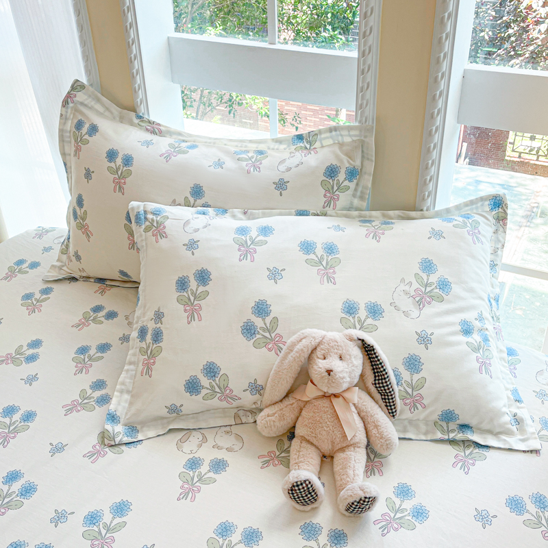 铭成家纺 2024新款新疆棉喷气印花小清新系列单品枕套萌趣蜜兔