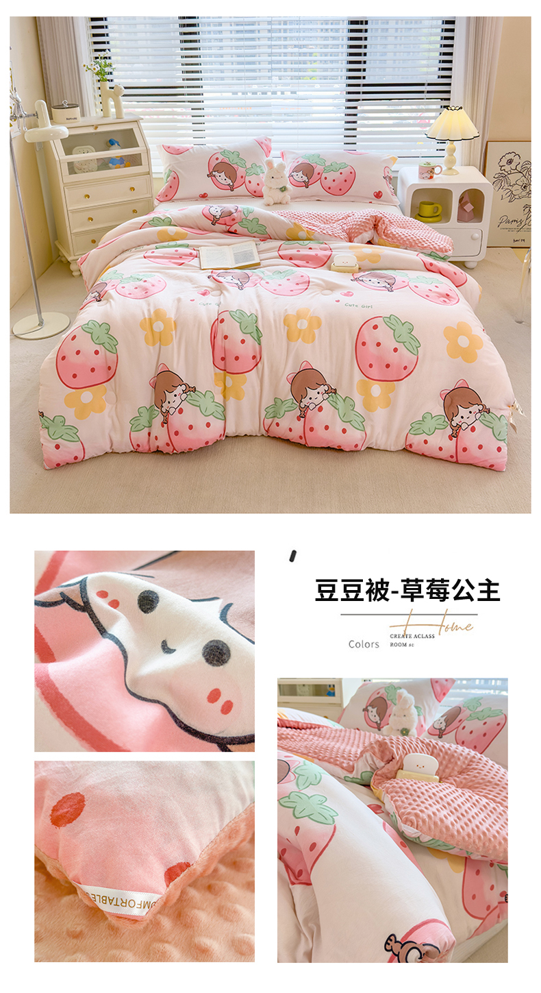 恒畅 2024新款A类水洗棉印花豆豆绒秋冬被 豆豆被-草莓公主