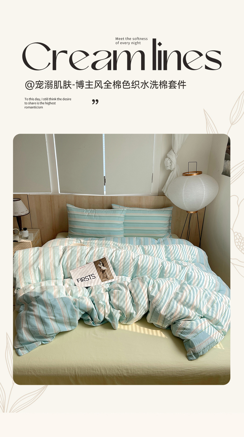 商品名称:艾咪-Amy ntmy 2024新款学生季宿舍床全棉色织水洗棉三件套 左岸蓝