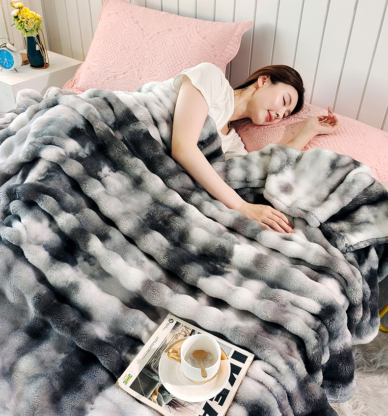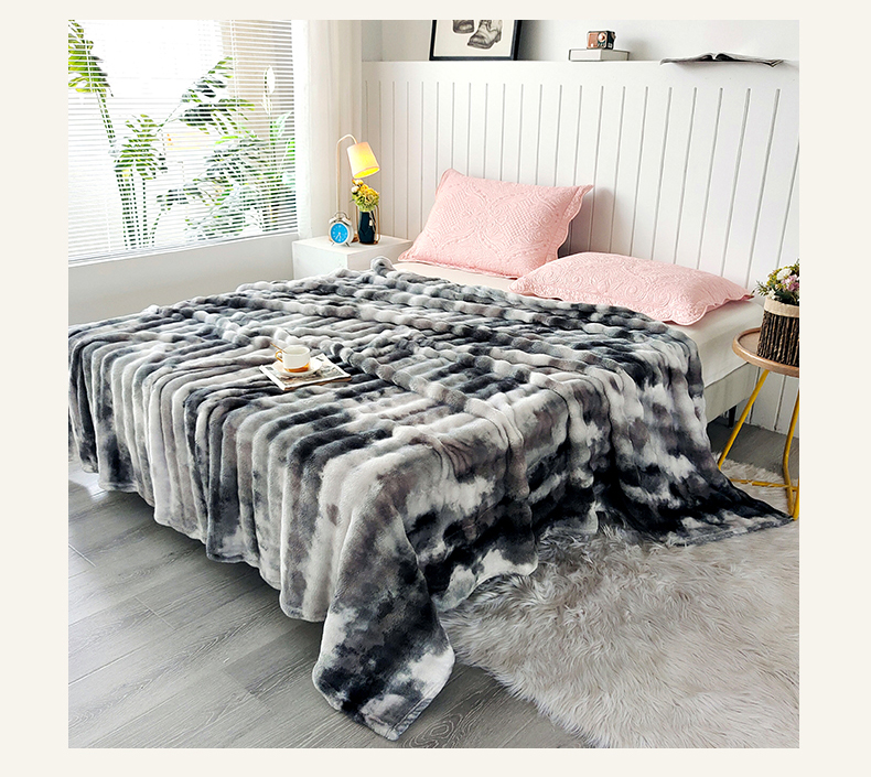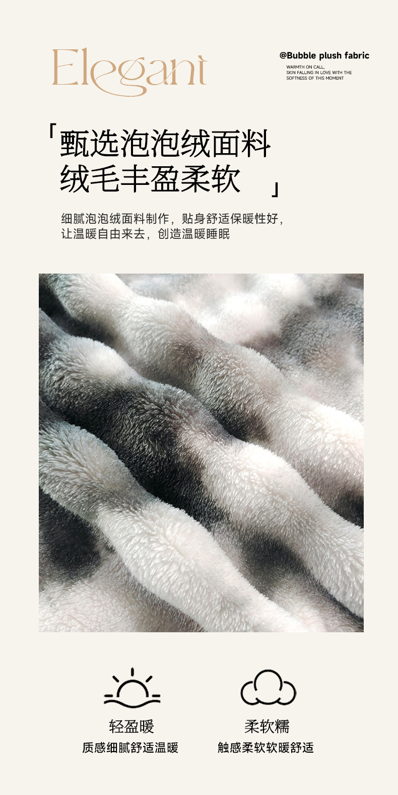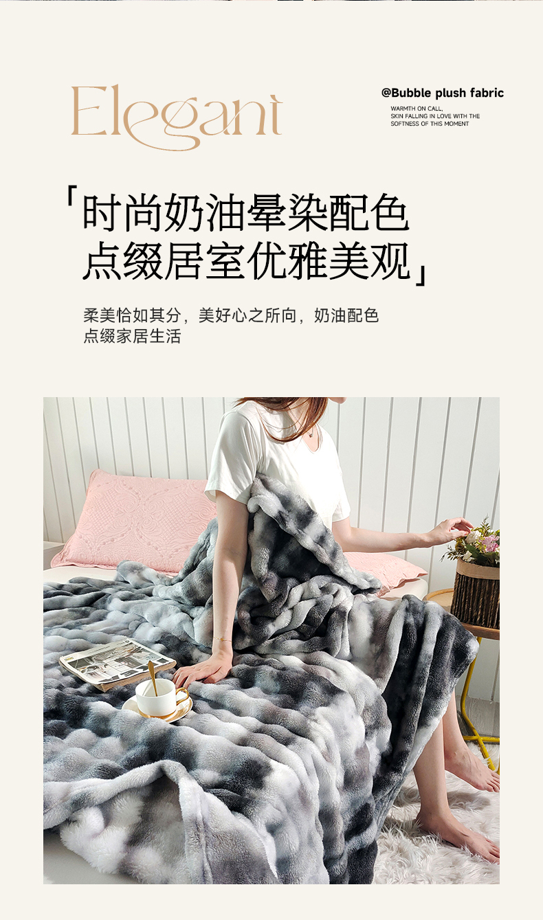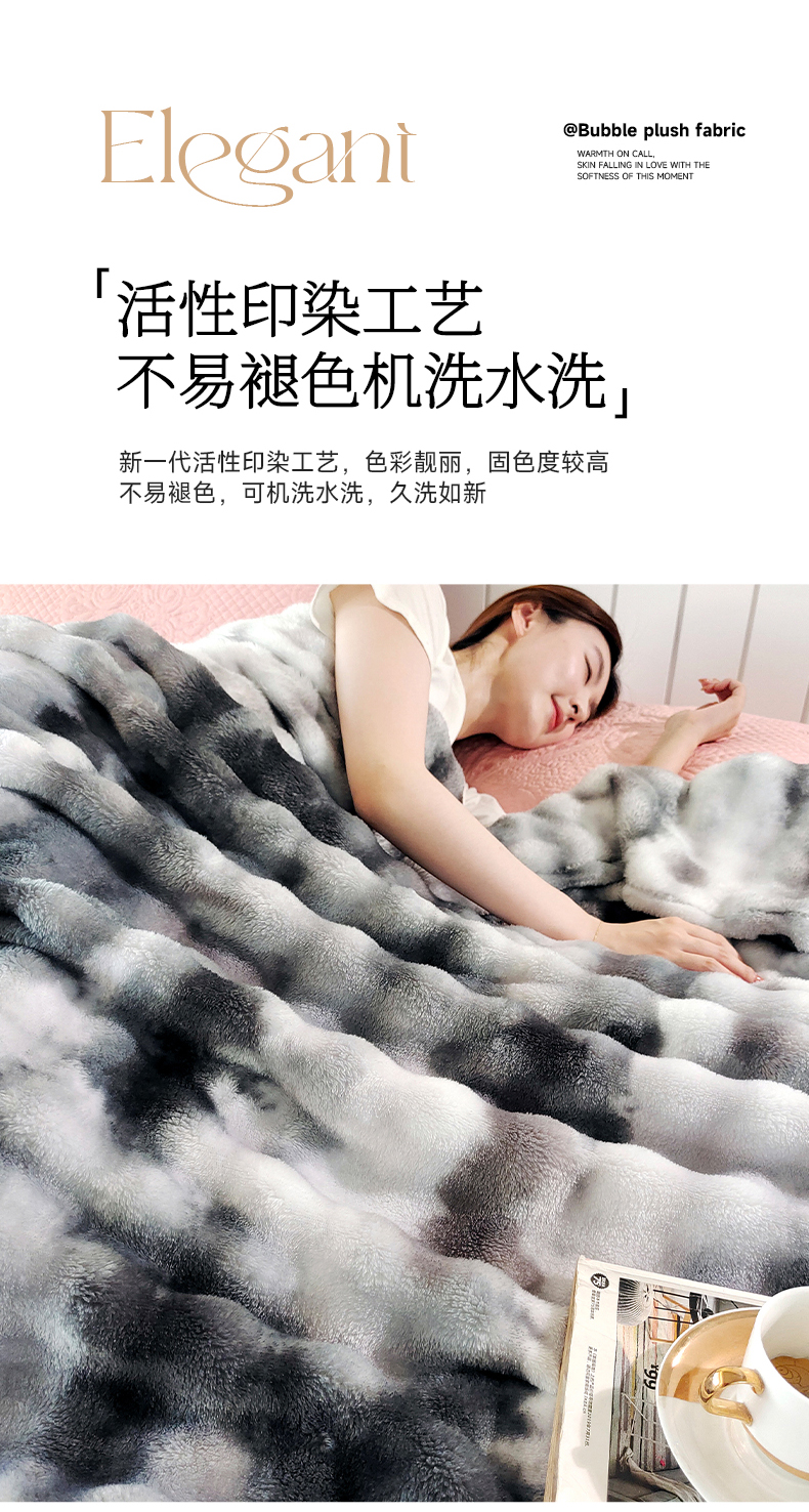 商品名称:美洲琳 2025新款印花拼色泡泡绒毯-流云溢彩 深灰