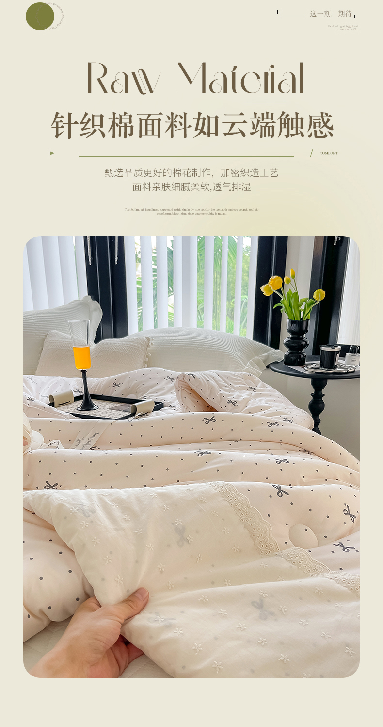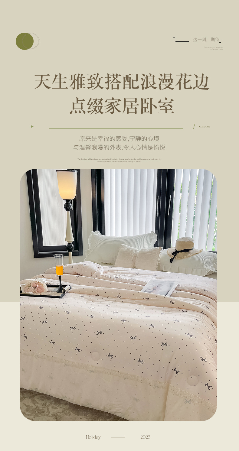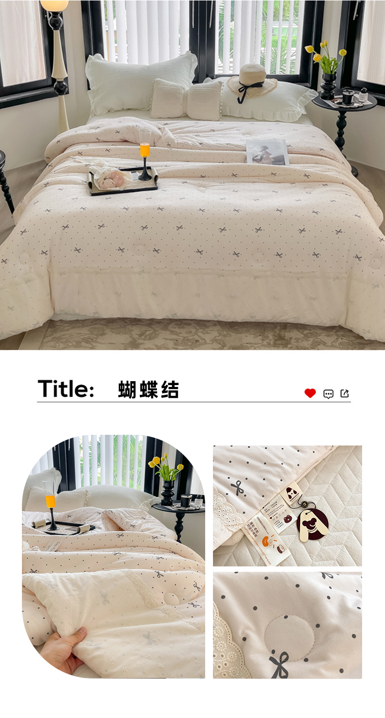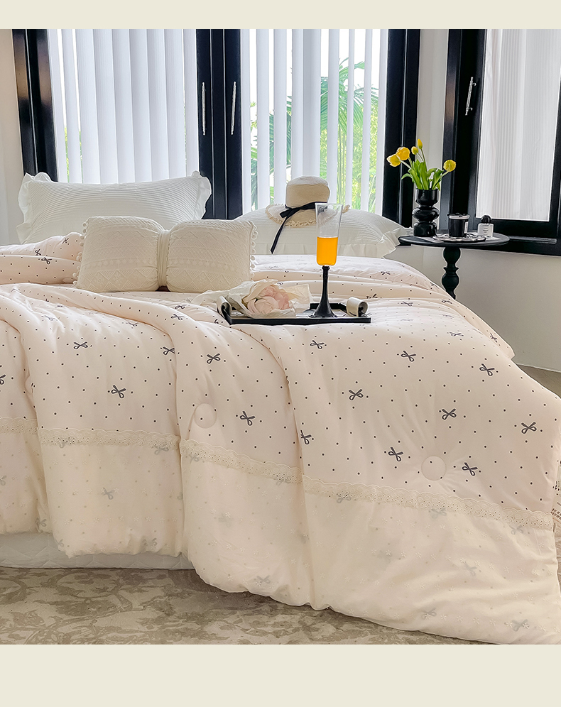 商品名称:奈萝家纺 2024新款法式花边款针织夏被春秋被可机洗 蝴蝶结
