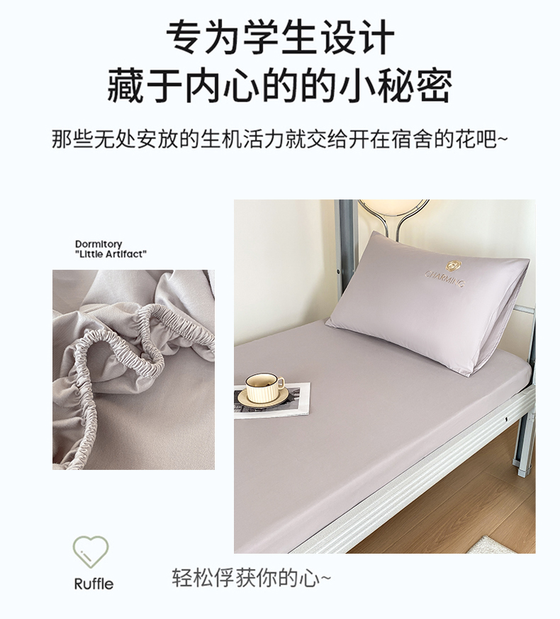 • 91家纺网 家纺一手货源 找家纺 暖季家纺 2025新款学生上下铺山茶花绣花床笠支持定制 山茶花奶昔白