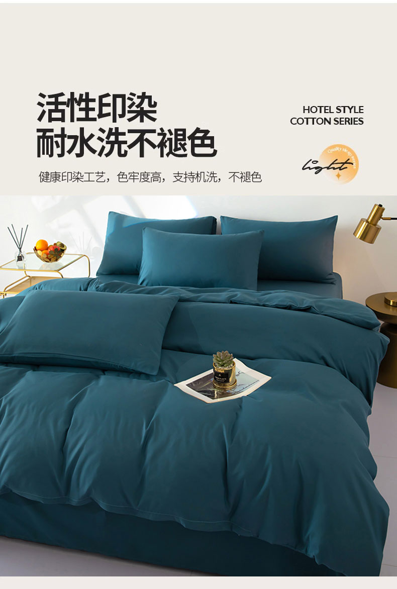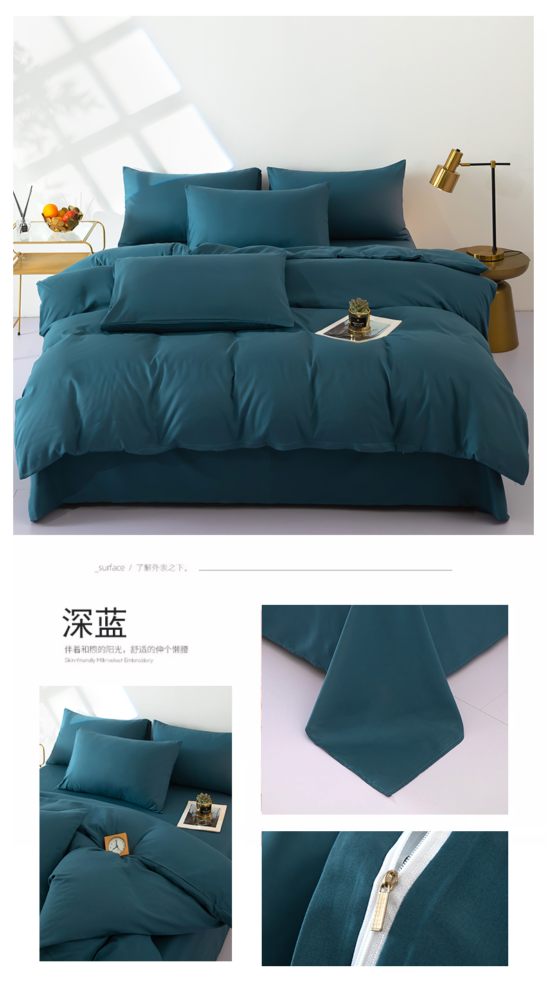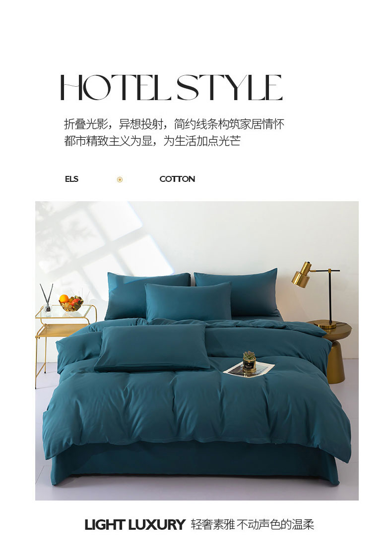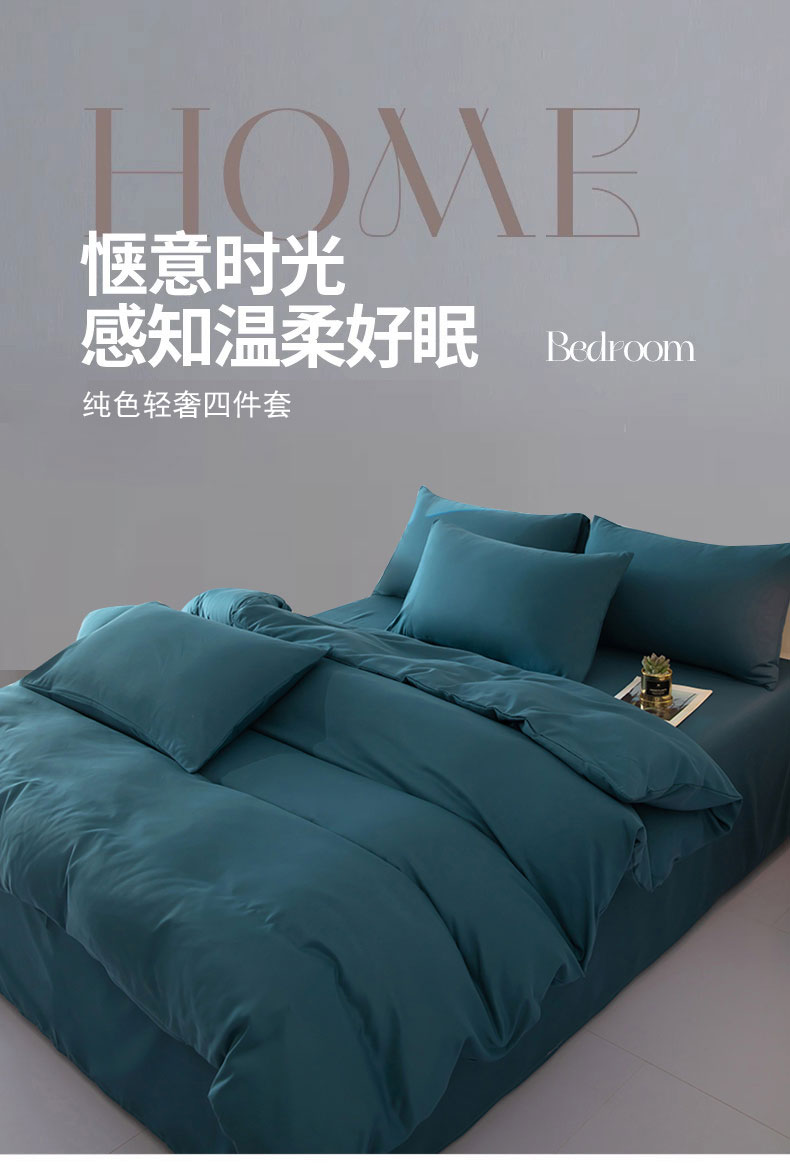 商品名称:梦莱家纺 2024新款亲肤磨毛纯色拼色轻奢系列四件套 深蓝