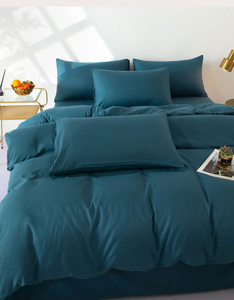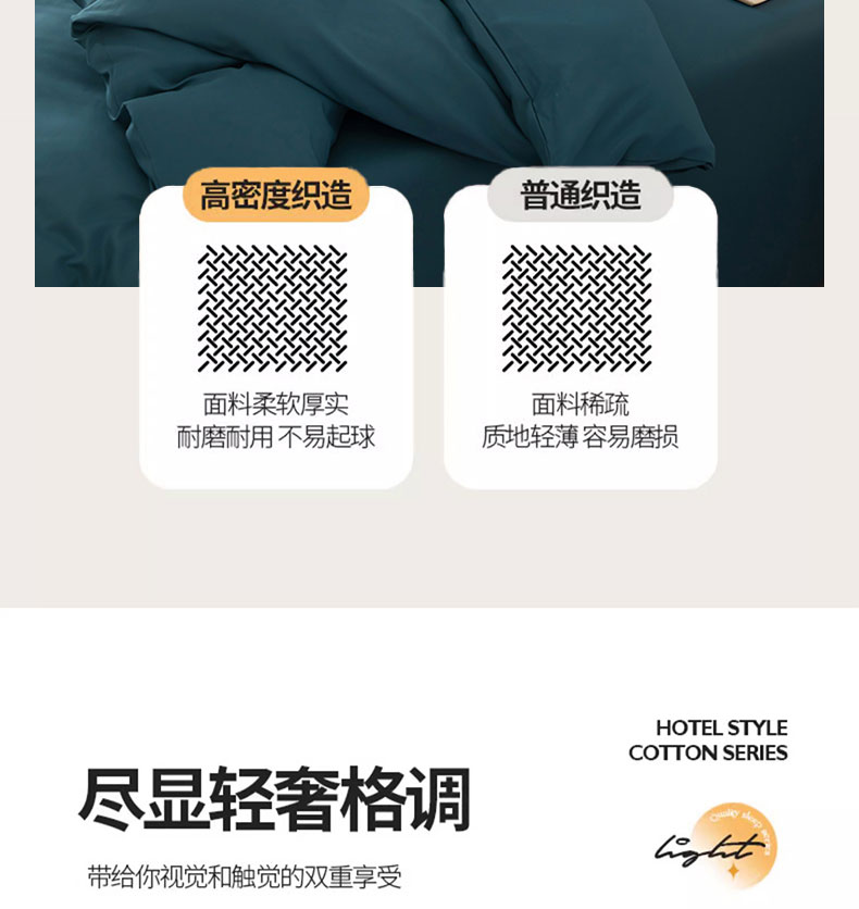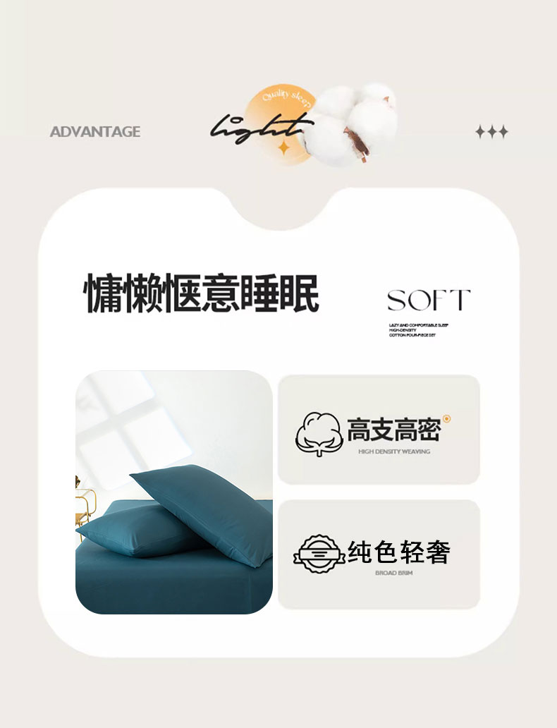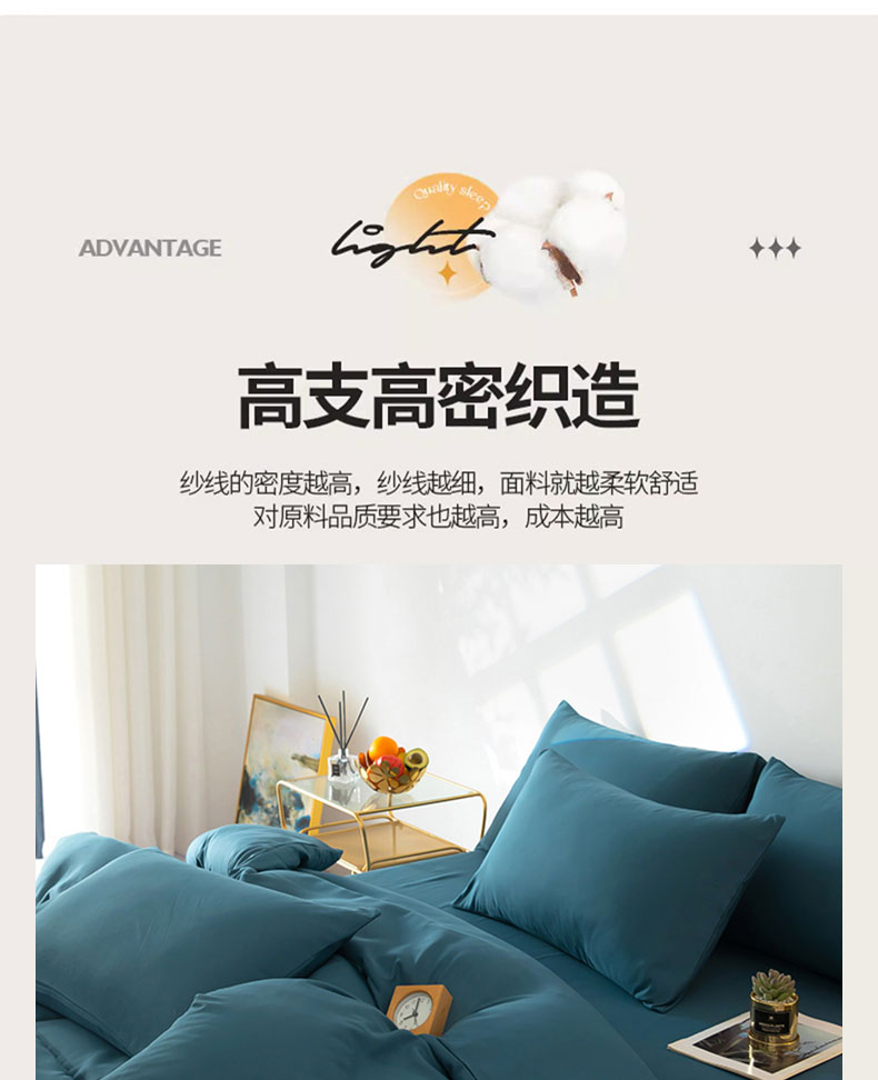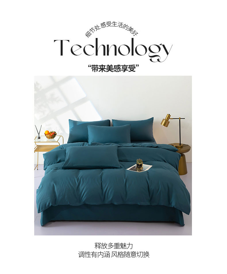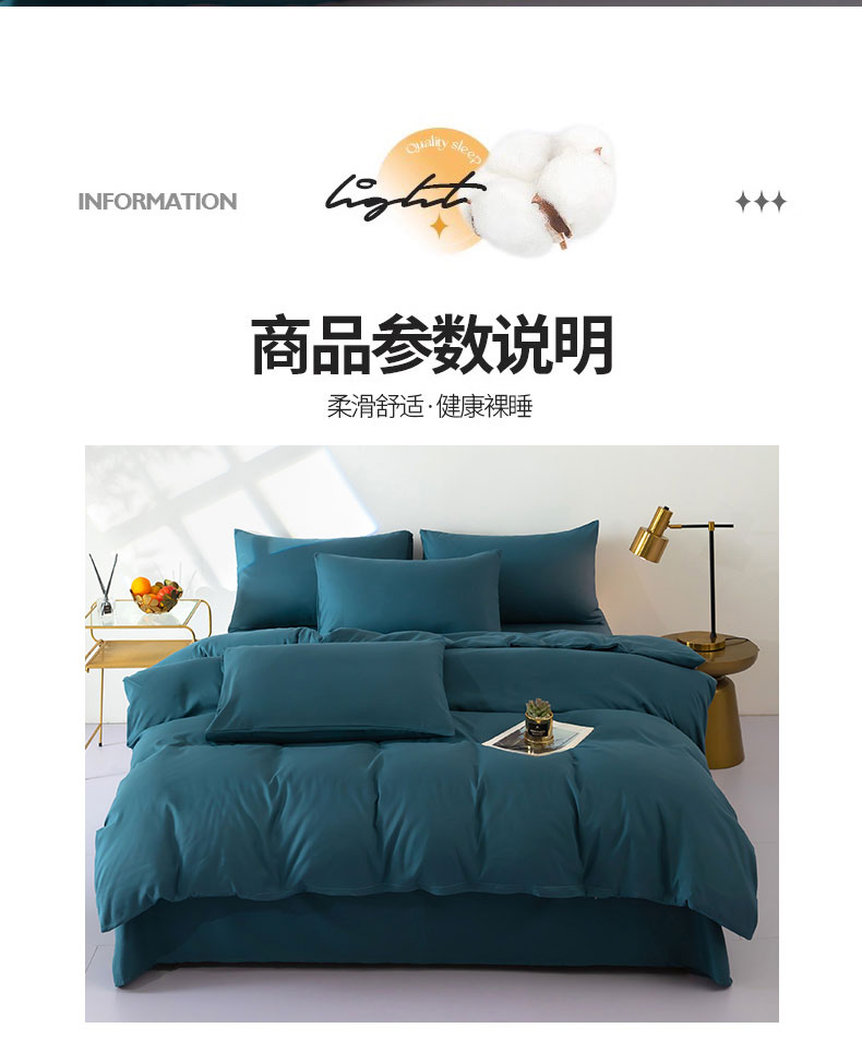 商品名称:梦莱家纺 2024新款亲肤磨毛纯色拼色轻奢系列四件套 深蓝