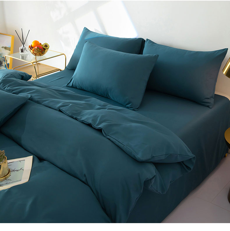 梦莱家纺 2024新款亲肤磨毛纯色拼色轻奢系列四件套 深蓝
