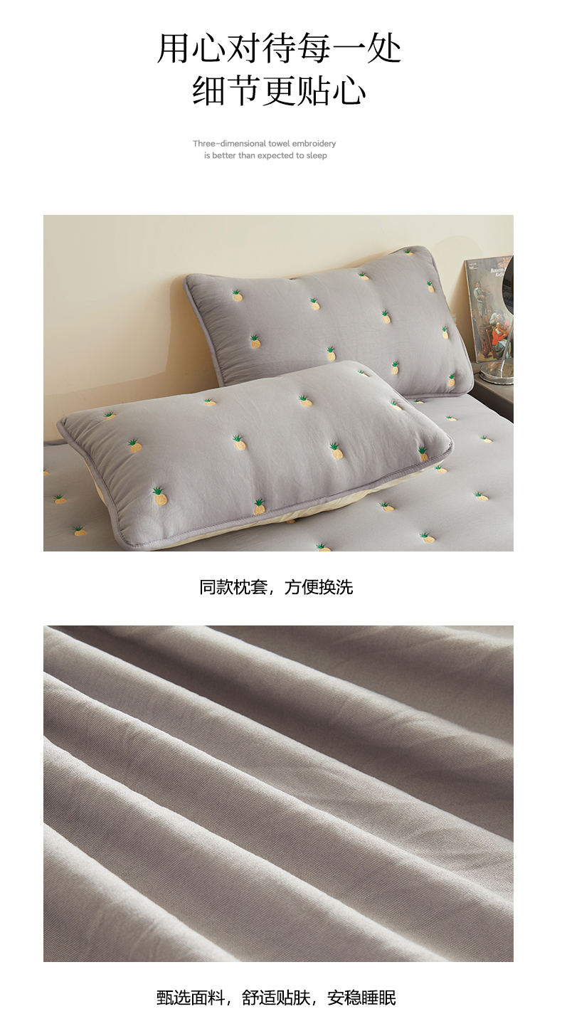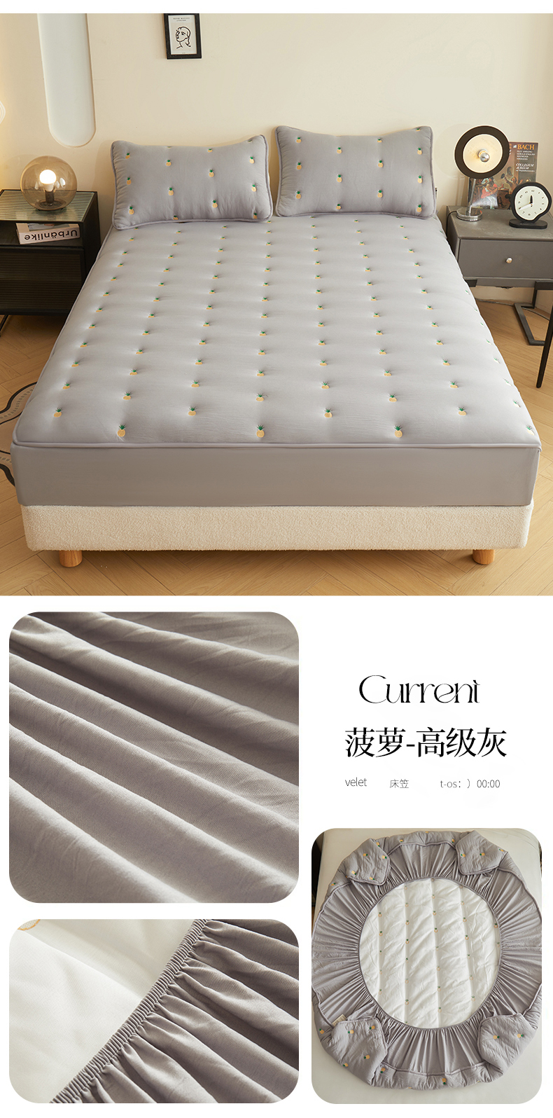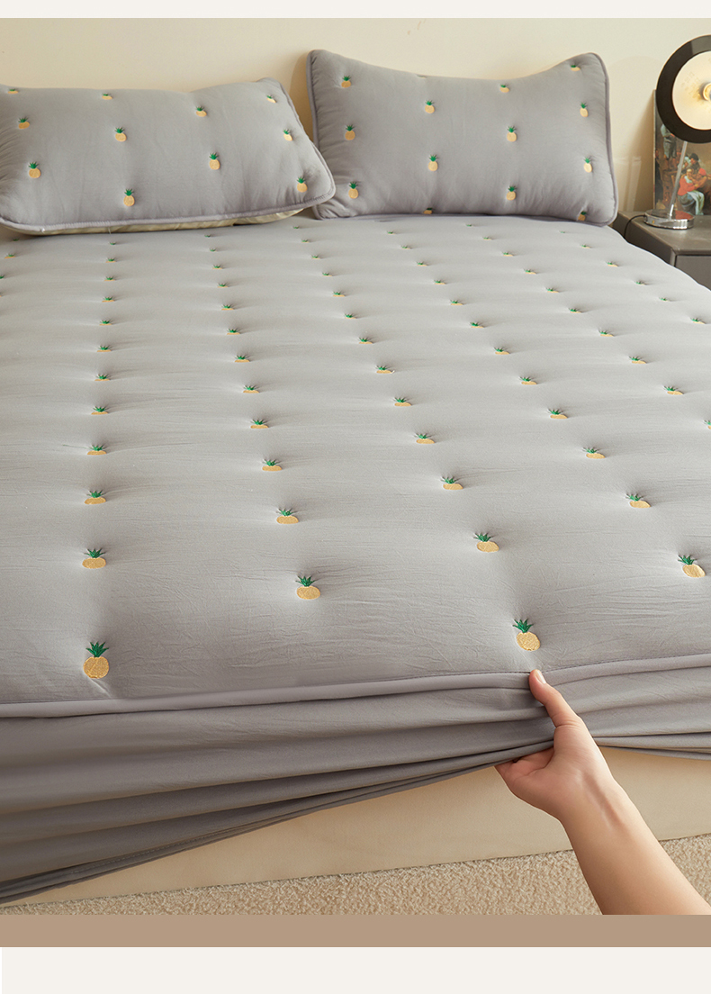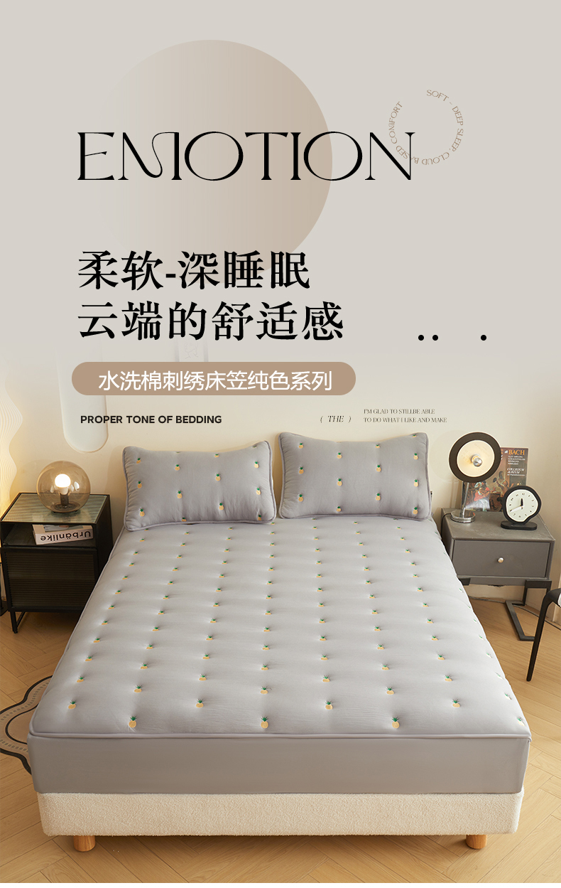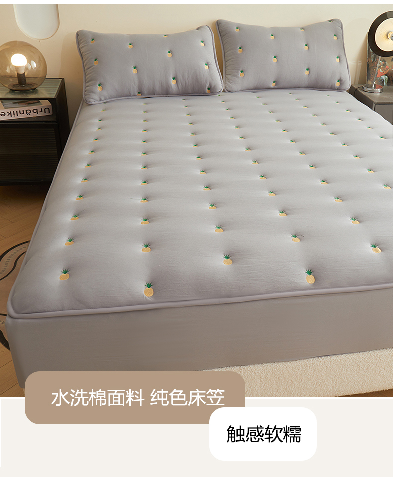 推推家纺 2025新款水洗棉刺绣床笠纯色系列 菠萝-高级灰