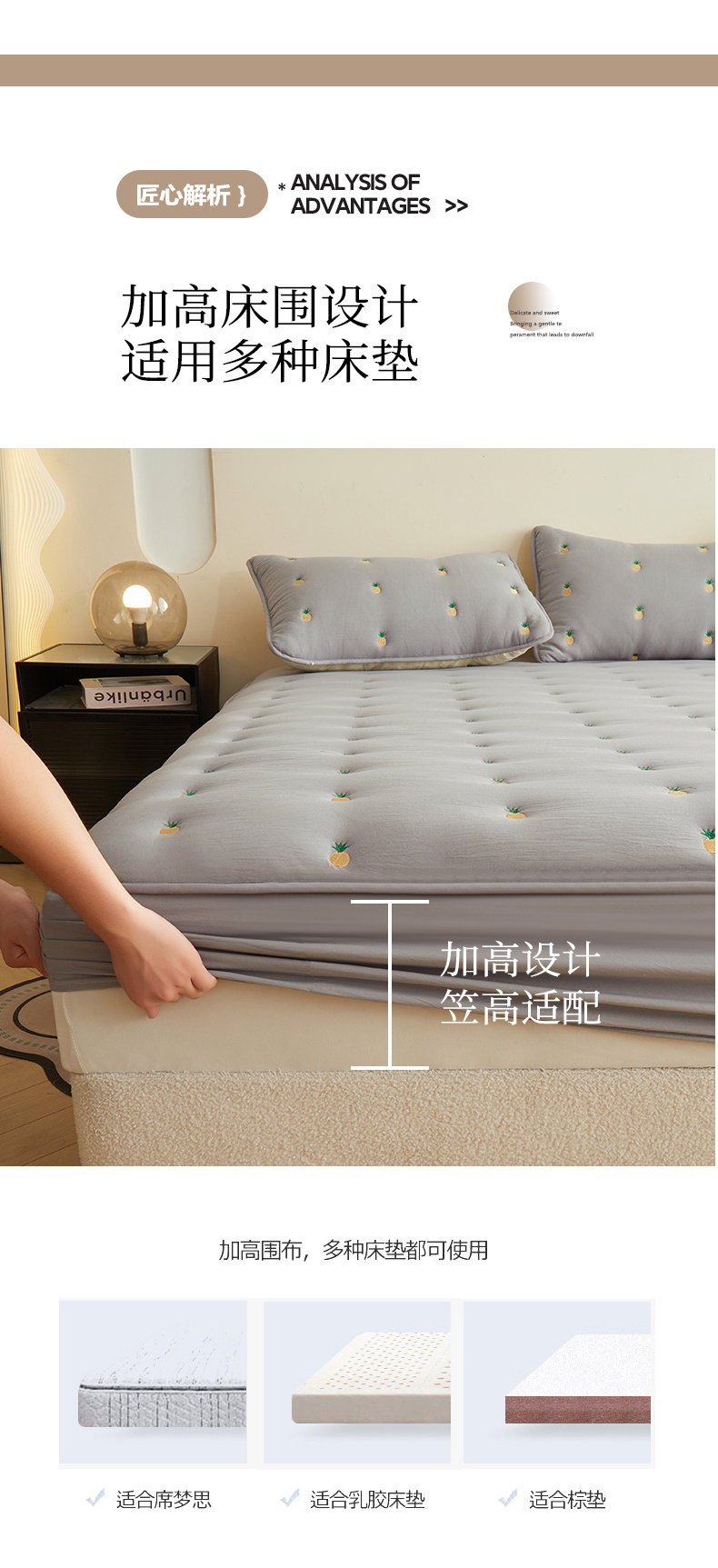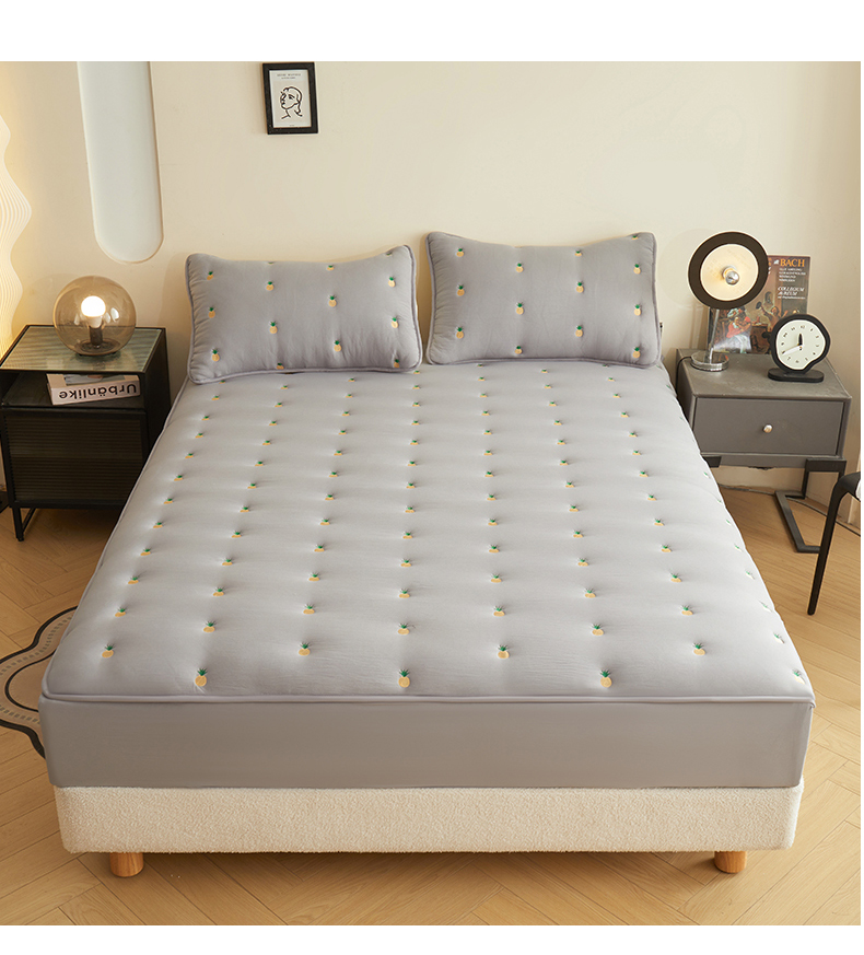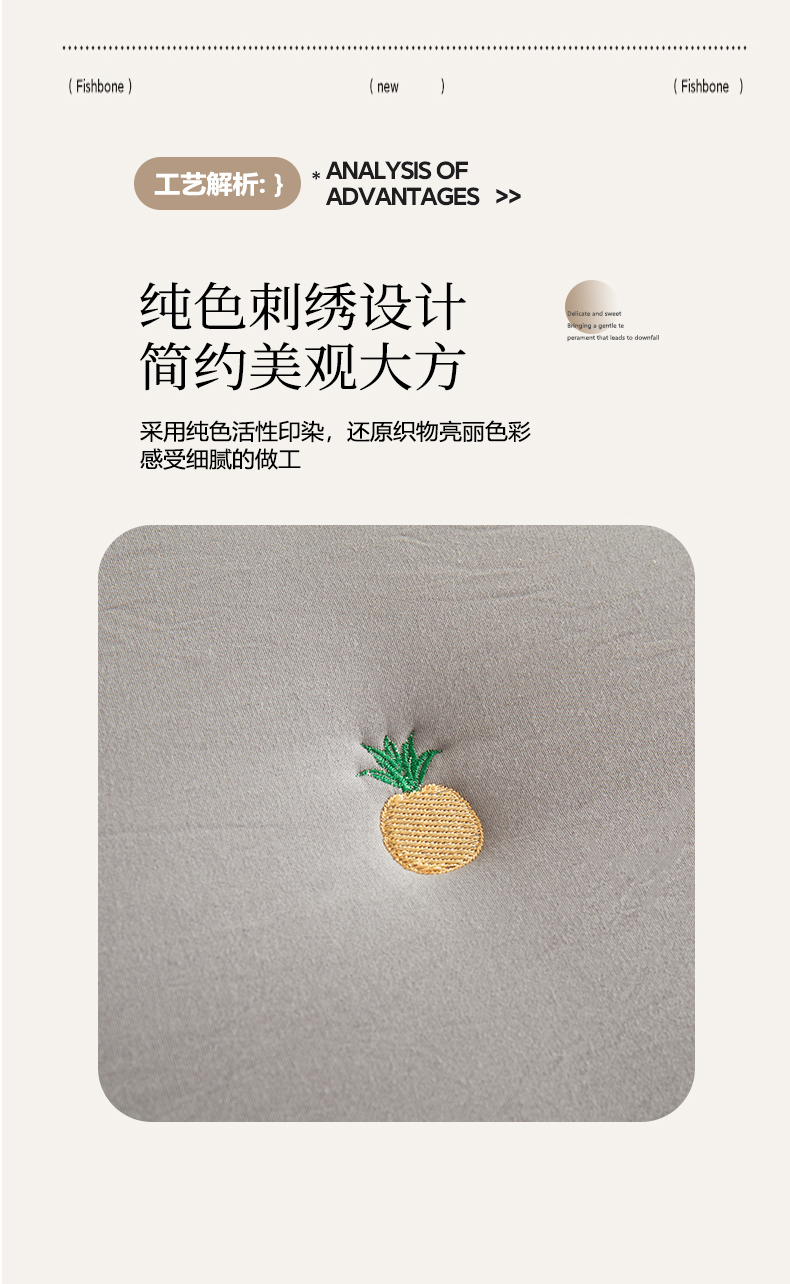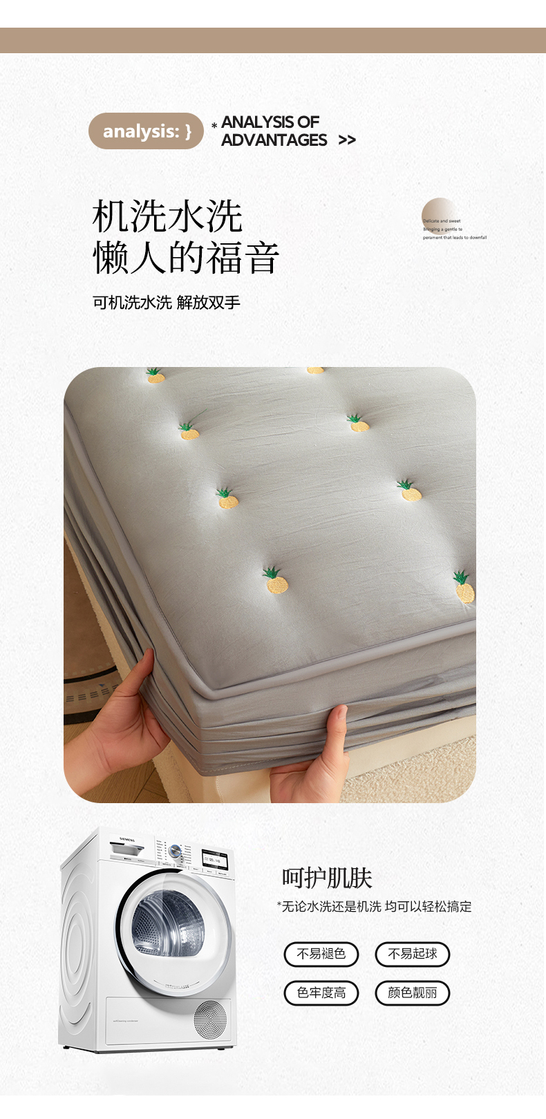 推推家纺 2025新款水洗棉刺绣床笠纯色系列 菠萝-高级灰