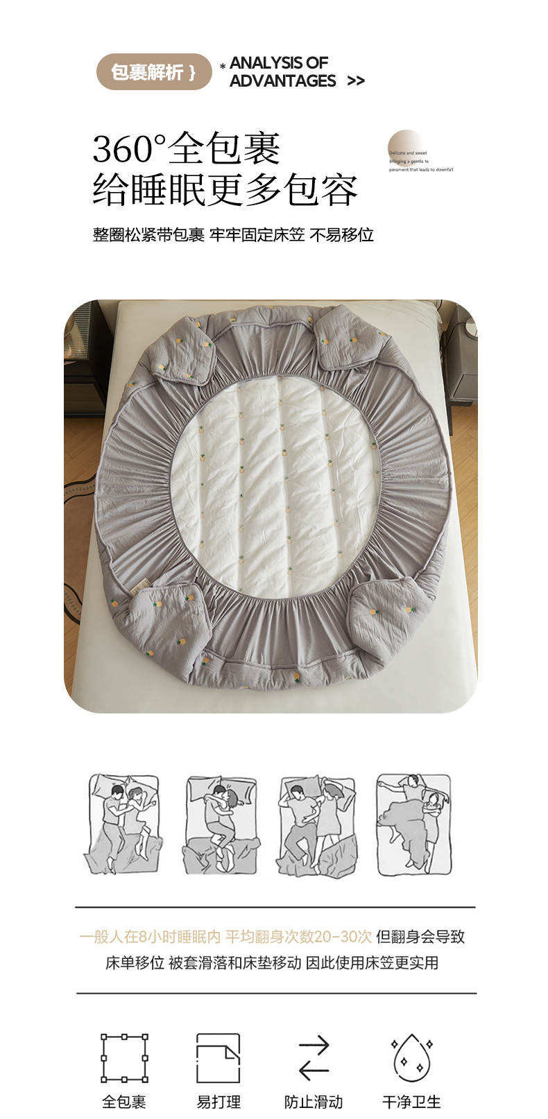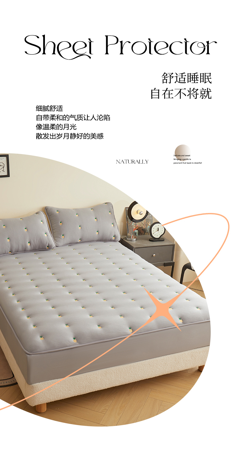 • 91家纺网 家纺一手货源 找家纺 推推家纺 2025新款水洗棉刺绣床笠纯色系列 菠萝-高级灰