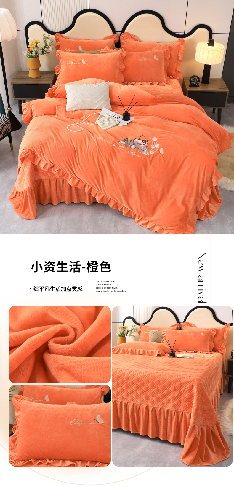 商品名称:优姿家纺 2024新品宝宝绒11斤夹棉床盖保暖四件套 小资生活-橙色