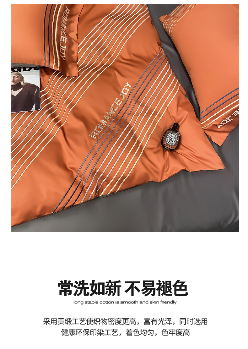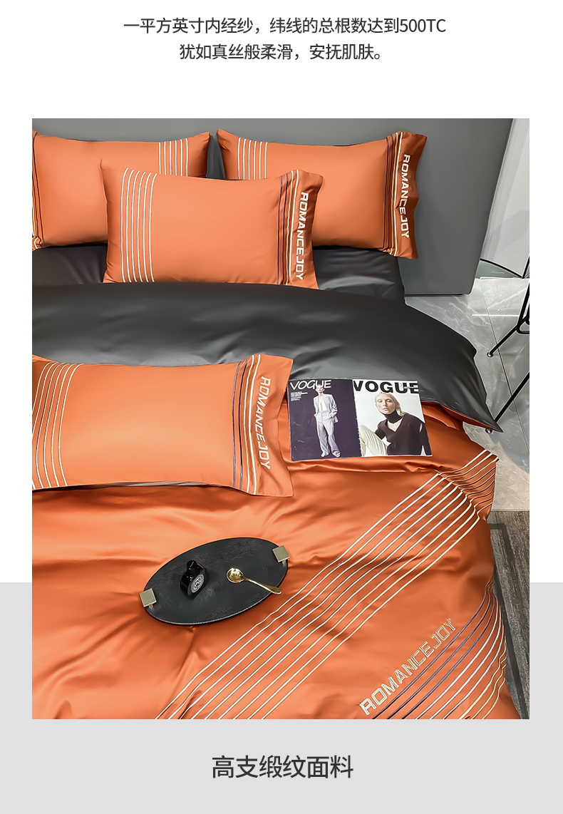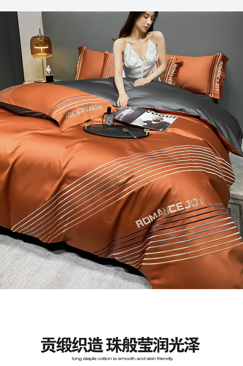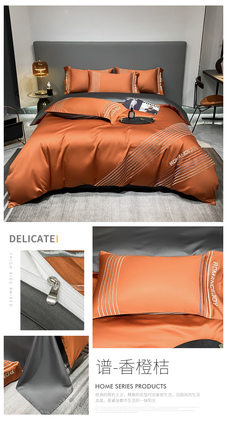 蓝米卡夫 2024新款A类100支全棉刺绣谱系列四件套(礼盒包装) 谱-香橙桔