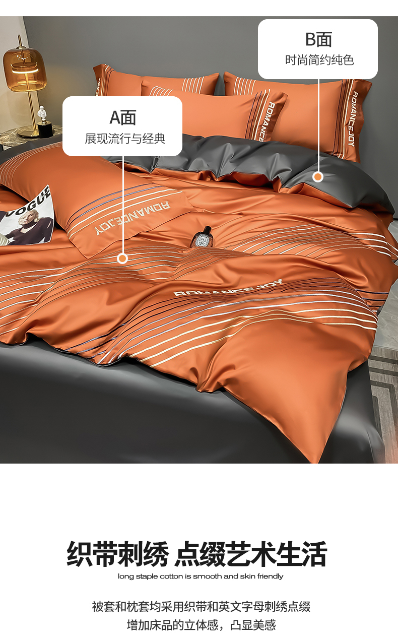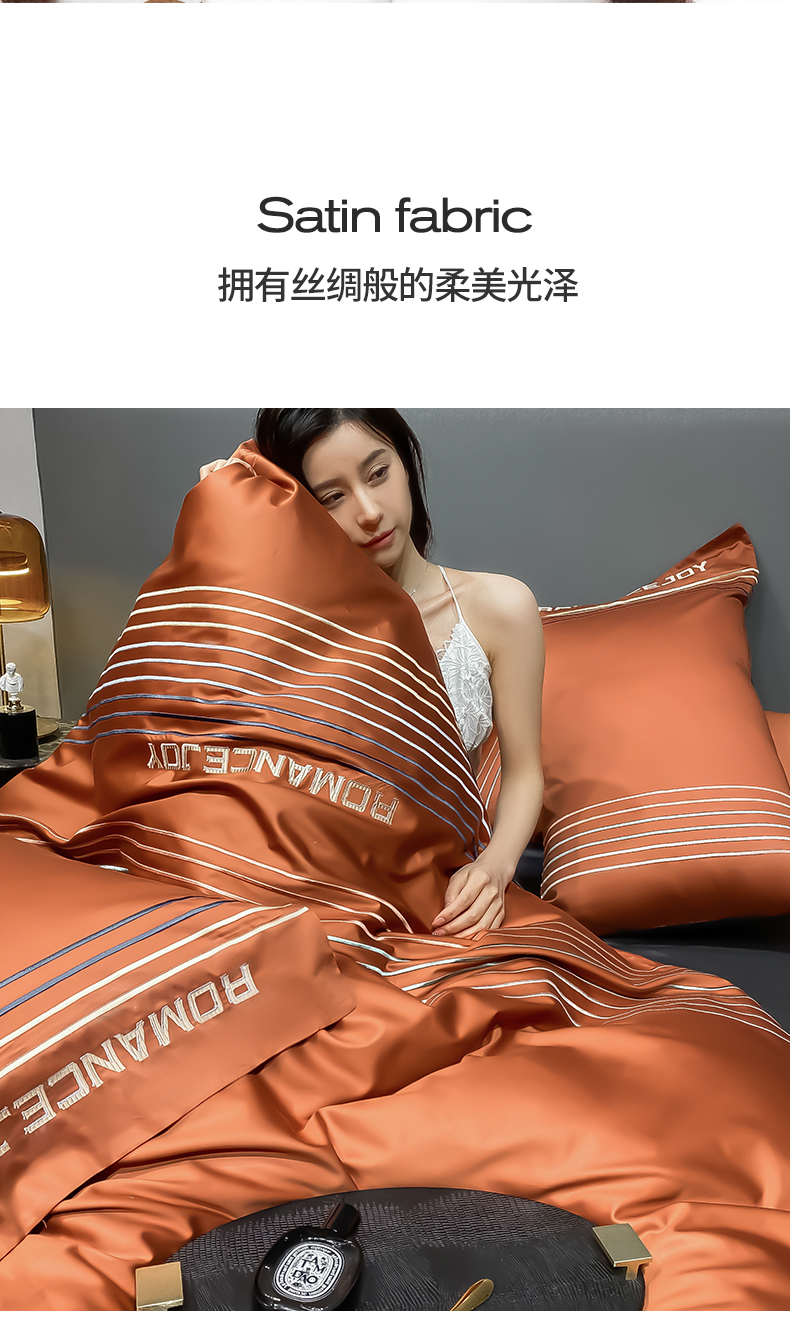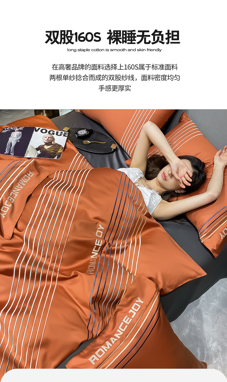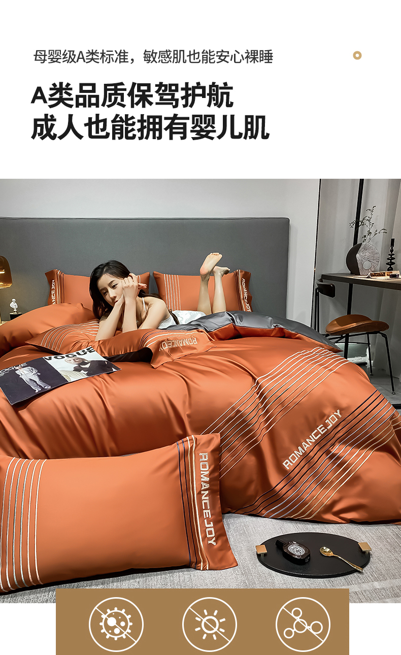 蓝米卡夫 2024新款A类100支全棉刺绣谱系列四件套(礼盒包装) 谱-香橙桔