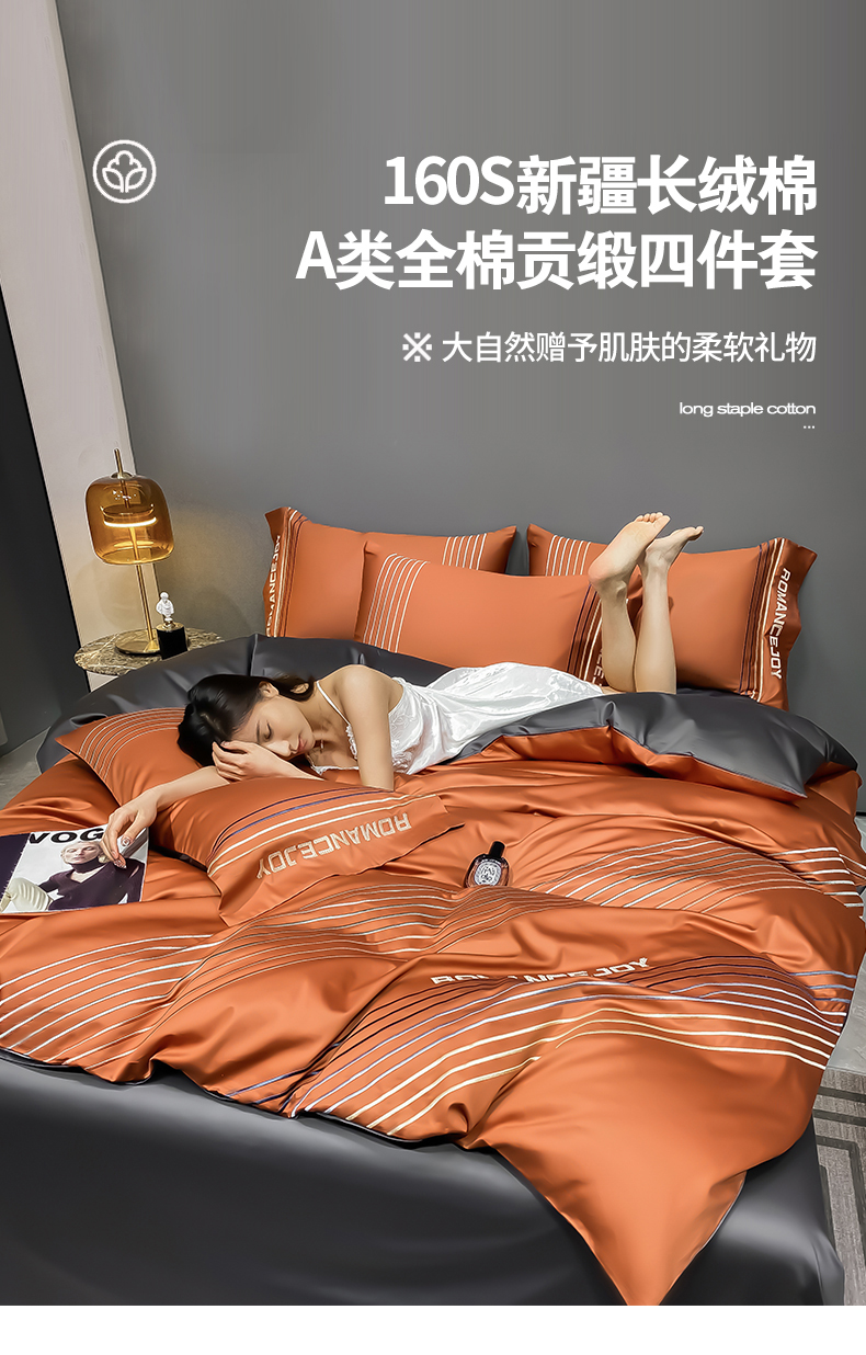商品名称:蓝米卡夫 2024新款A类100支全棉刺绣谱系列四件套(礼盒包装) 谱-香橙桔